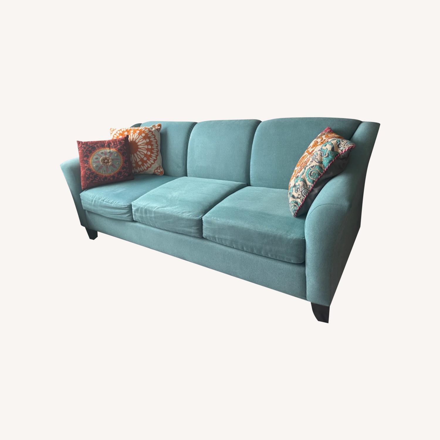 Seller's Notes:This beautiful sofa is a soft color and style that complements any decor style. It is in great shape and super comfy. Legs come off for ease of moving. 32”h x 82”w x 36”d. Raymour and Flanagan, original price $1300. No major marks, stains or tears. Must go by this weekend.