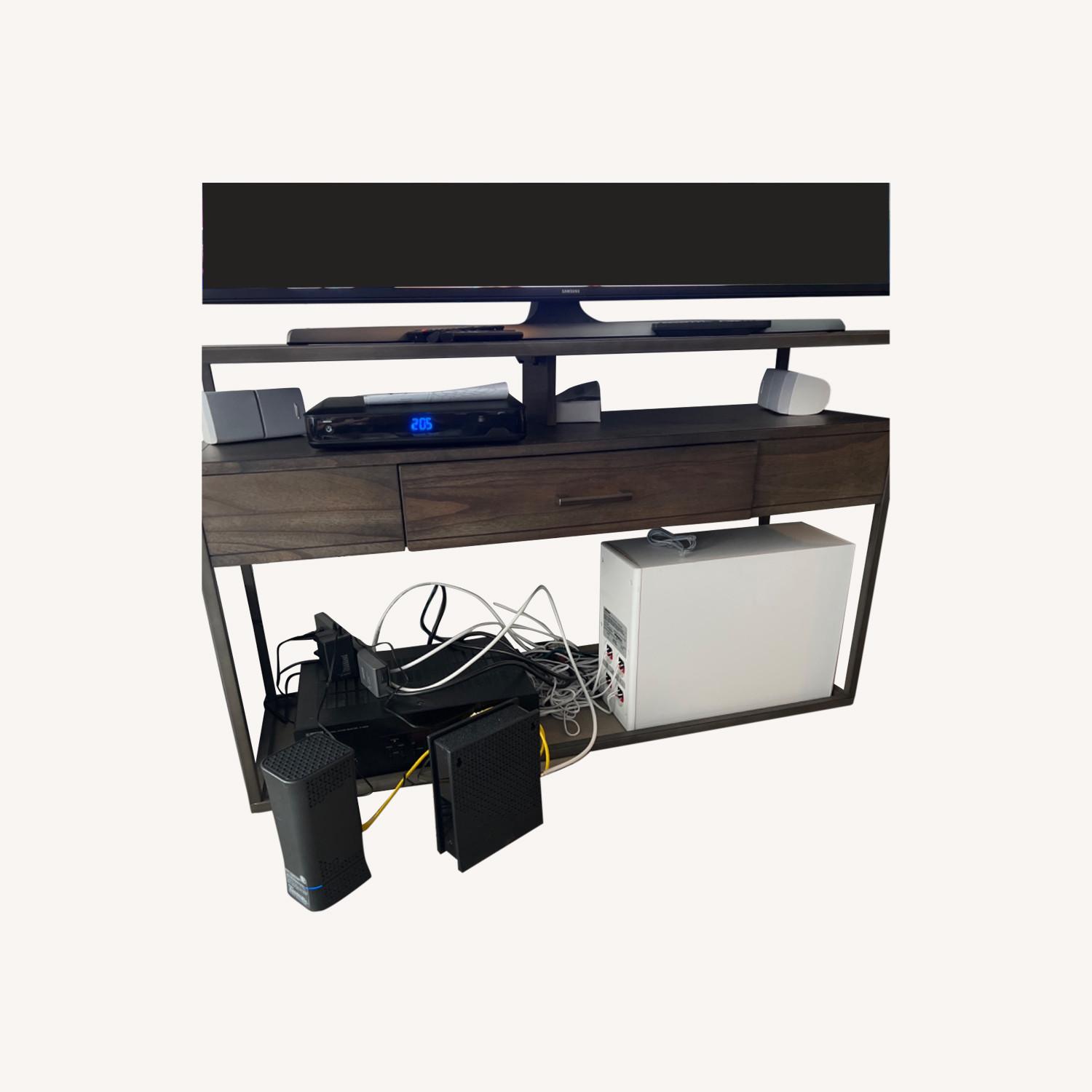 Seller's Notes:Wood finished TV stand with a drawer for storage