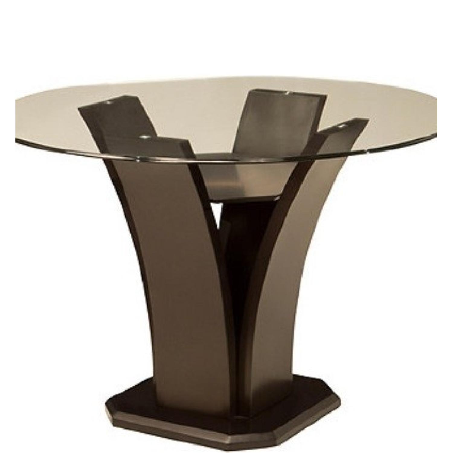 Seller's Notes:This is a Venice style dining set, it is an expresso color with four faux leather chairs. The chairs have minor scratches but other than that the set is in very good condition.