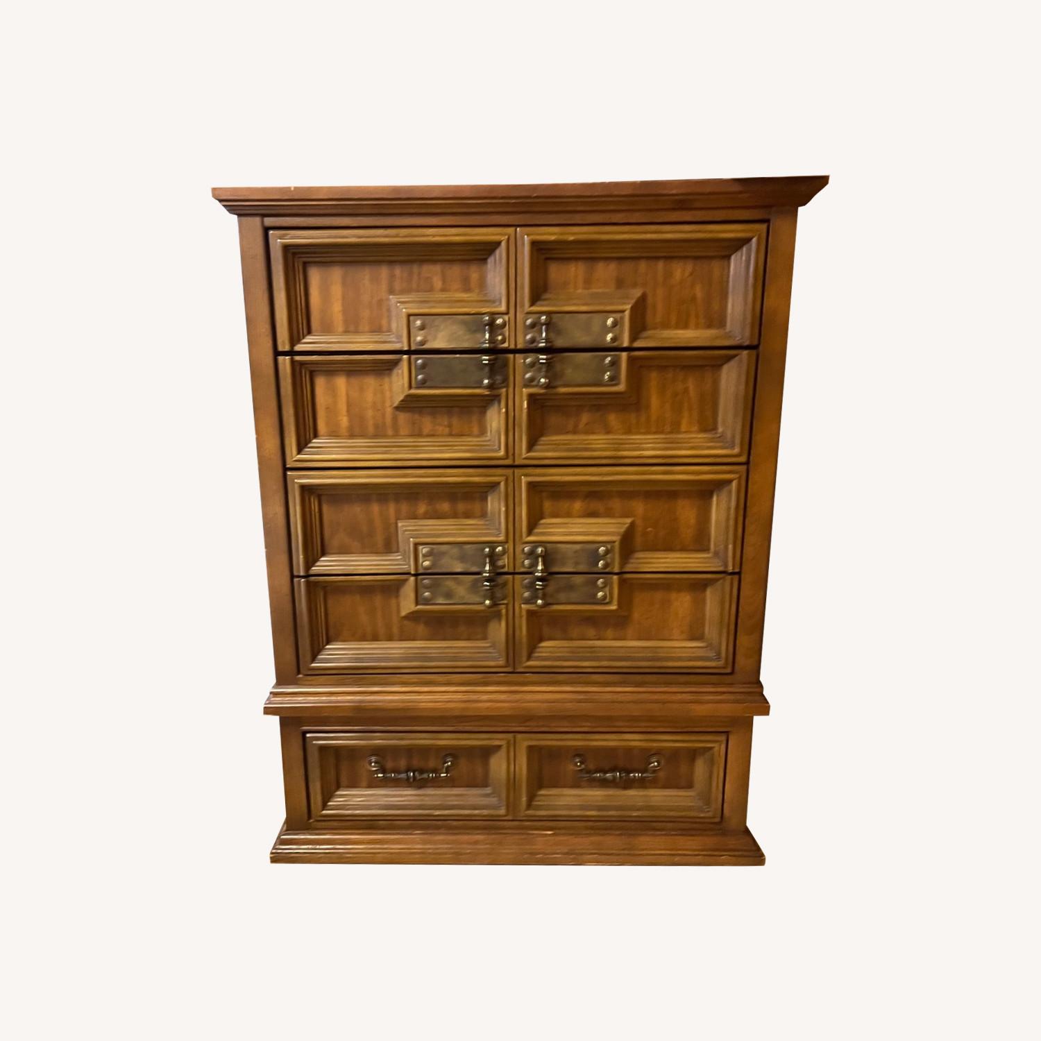 Seller's Notes:Chest of drawers. Dresser. End table. Entire set must go! Dimensions are for chest of drawers. Photos show entire set beautiful furniture but too big to move into mom’s assisted living studio. Lots of storage. Sturdy wood