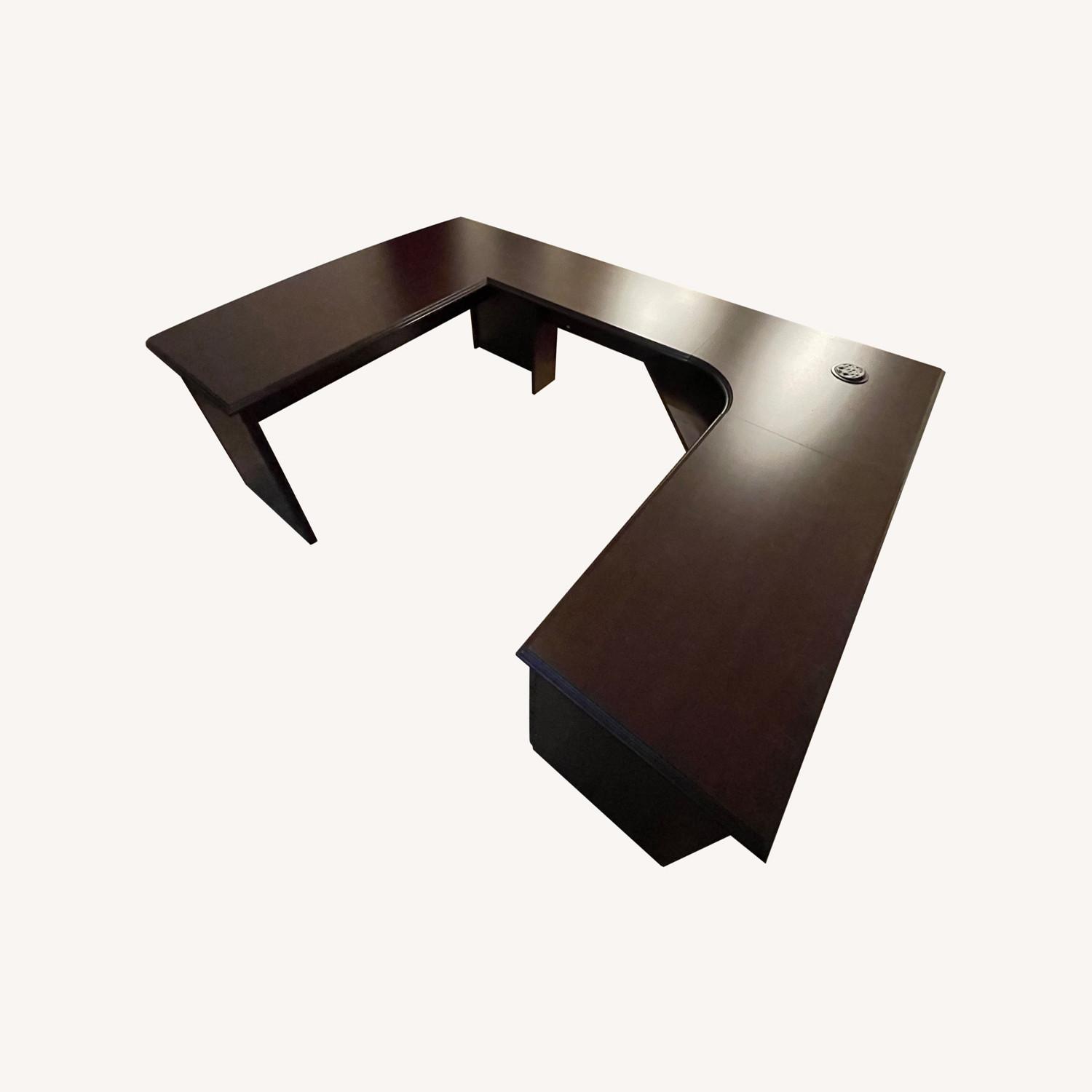 Seller's Notes:Color Cherry Width 65 in. Depth 28 in. Finish Dark Finish Height 30 in. Number Of Drawers 3 Drawers Certifications Tested to meet ANSI/BIFMA Performance Standards Cord Management Yes Desk Style Executive File Drawer Yes Integrated Electrical Outlet No Keyboard Tray Yes Locking Storage Yes