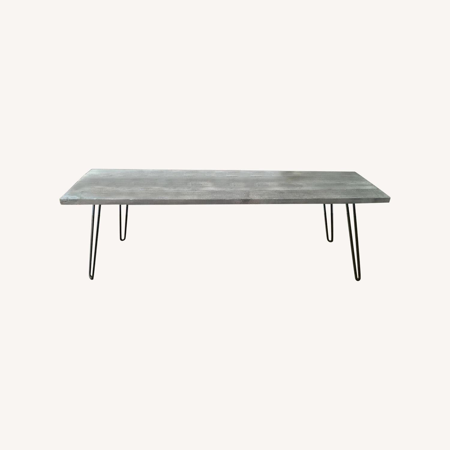 Seller's Notes:This extra-wide reclaimed barnwood coffee table has been weathered to add character. The light and trendy hairpin legs are hand-welded with a raw silver finish. Message me if you have any questions!