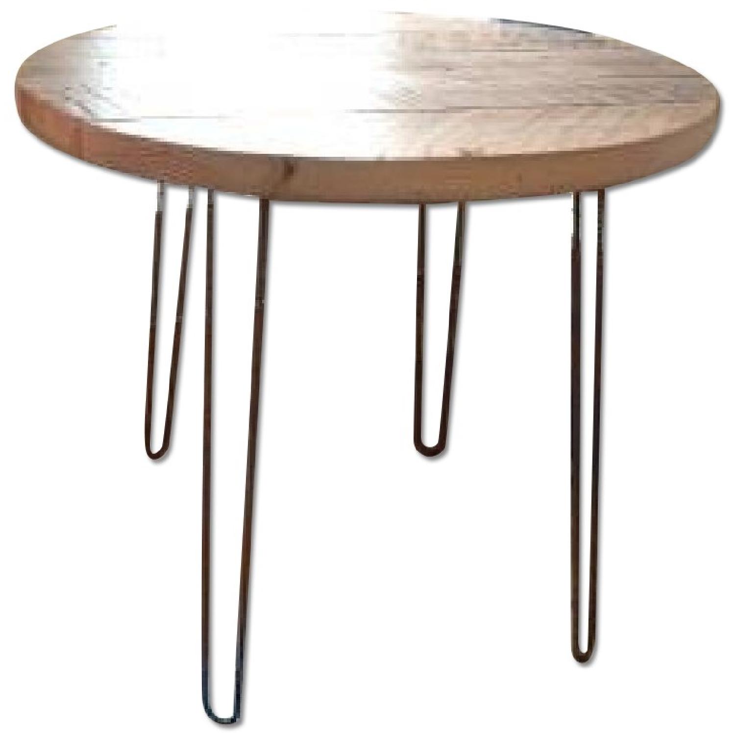 Seller's Notes:Selling our handmade round kitchen table after 1 year of use. Sadly, it doesn't fit in our new apartment! It's made from reclaimed 100-year-old barn wood by (the legendary) Dusty Schroeder, this pretty reputable woodworker who lives in a temperate rainforest at the bottom of Oregon's Mount Hood. No joke. It has awesome hairpin legs, 36 inches in diameter, 3-4 person table. We paid $400 incl. shipping. Selling for $200, must pick up. Width: 36 inches in diameter Height: 30 inches