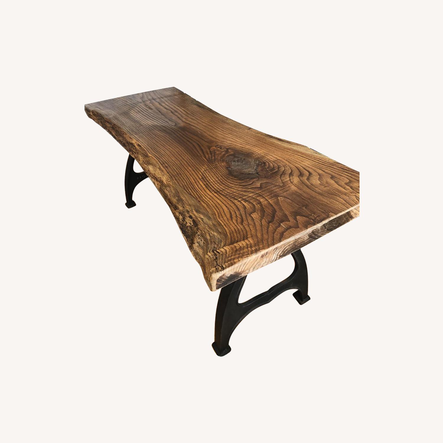 Seller's Notes:This is a beautiful and very sturdy reclaimed SOLID Oak wood rectangular dining table with walnut-color stain finish. The wood slab is heavy, thick and solid. As you can see from the photos it is ONE piece. The wood was treated but kept mostly natural, so it has irregular edges and finish. Its legs are made of cast iron with 'Providence, RI' annotation at bottom (inner side only). We love this table but decided to part ways with it simply because it doesn't fit very well in our new apt living room. We are eager to find a new home for it and owners who would love it as much as we do :) Detailed measurements: 70" long 27" at widest width 22.5" at smallest width 2 1/4" thickness 30.5" high Legs measure 28.5" high