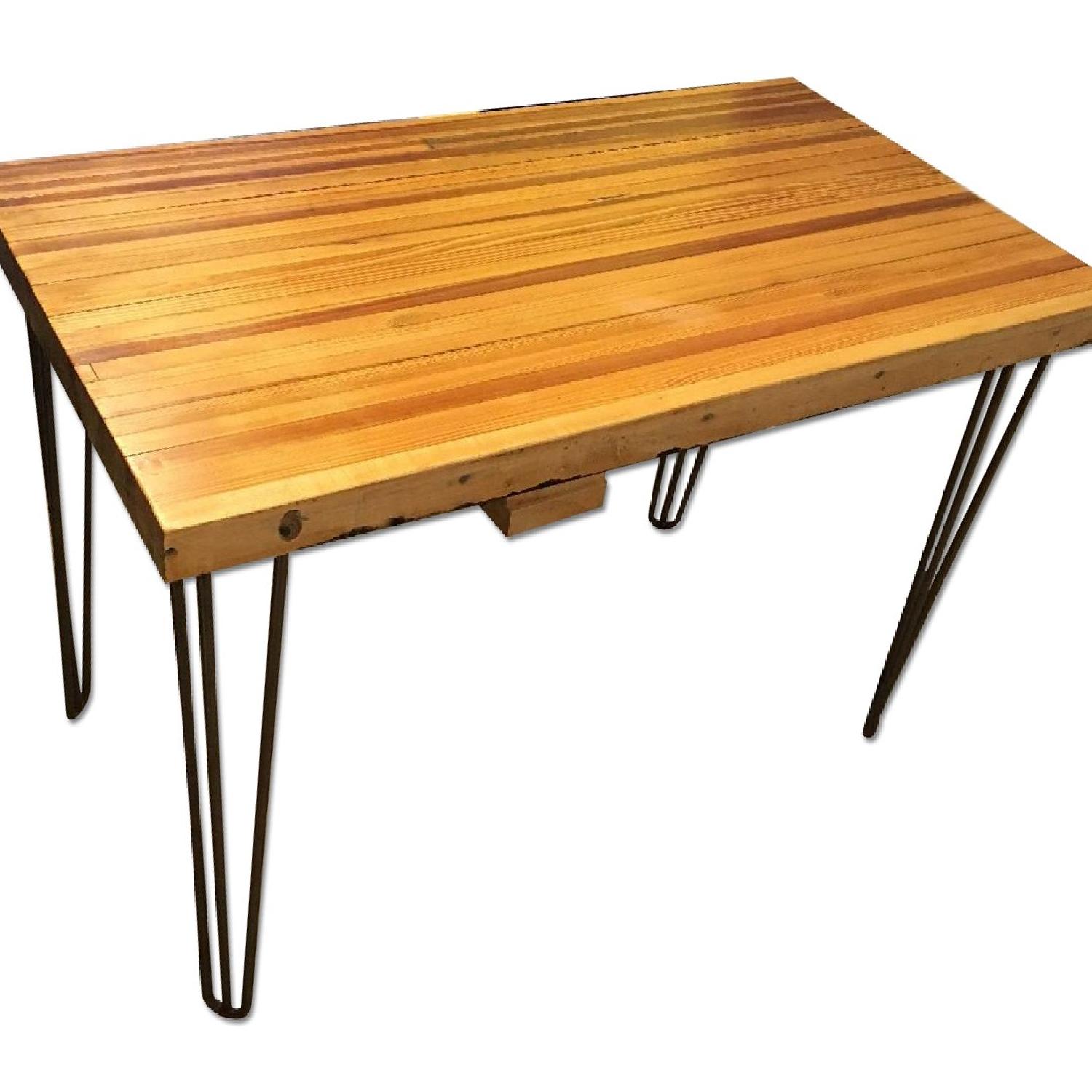Seller's Notes:Handmade from reclaimed bowling lane wood. Steel hairpin legs. Seats 4-6