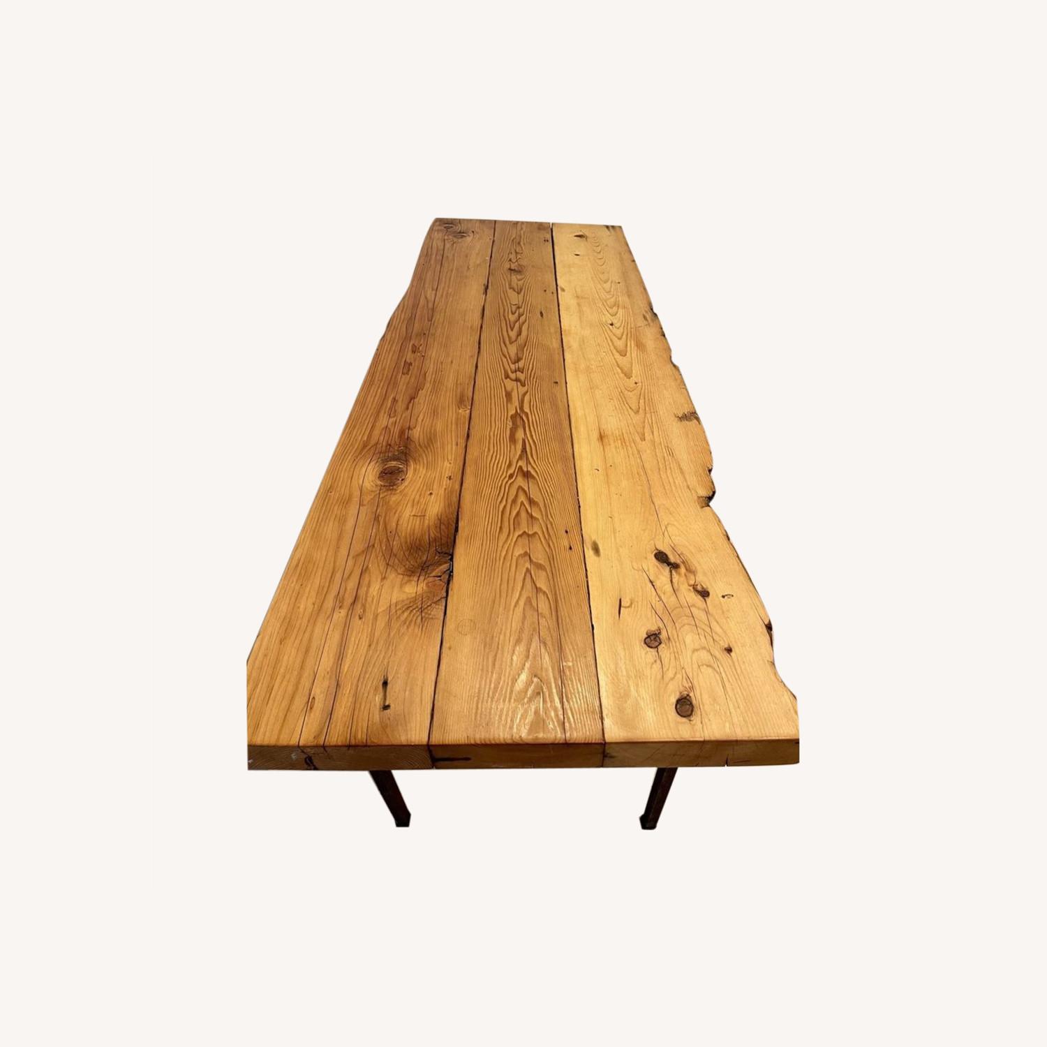 Seller's Notes:Sturdy handmade solid wood table for the perfect addition to a farmhouse rustic home or apartment. Comfortably fits 6-8 and would look great with benches instead of chairs. I'm moving to a smaller apartment so I cannot take this with me. Dimensions: W 25 inches x L 69.5 inches x H 30 inches Pick-up only, but there is an elevator in my building which fits this table for easy transport.