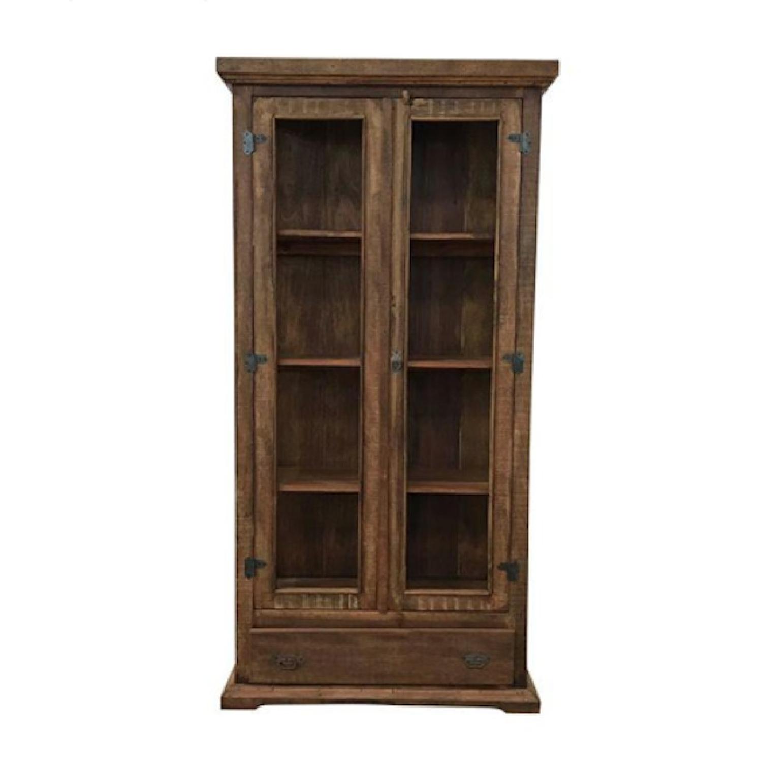 Seller's Notes:Time to show off your treasures!! This handmade Vitrine/Display Cabinet features two glass doors, four shelves, a wide bottom drawer and a finish with black rivets and simple ring pulls. Reclaimed wood includes distinctive nicks, imperfections, and nail marks, proving the authenticity and singularity of all of our antiques. Our reclaimed peroba wood antiques were weathered and aged naturally over time, making each piece unique and special. Our furniture is always properly treated, followed by a lengthy hand-waxing process for a long-lasting fine finish. 100% reclaimed peroba wood, over 100 years old. Handmade. Eco-friendly. Natural beeswax finish. Expect unique variations because no piece is alike. Dimensions: 40” W x 14.7” D 78.5” H Ref: STP-LA-26 Lead time: 4-8 weeks Shipping included.
