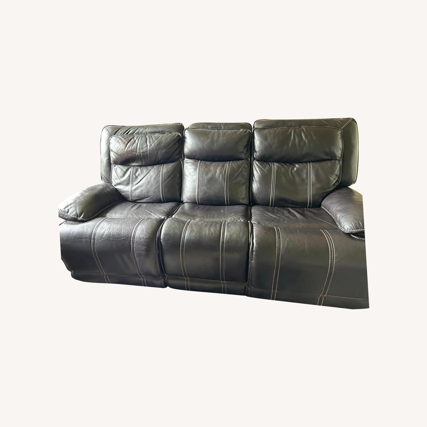 Seller's Notes:Reclining Sofa, Faux Leather 3 Seat Sofa, 2 Seat Recliner Channel cushioning along the sides flows into thick, wrapped pillow top armrests. simple push of a button to extend the recliner on either side. Dimensions: 88"W (side to side) x 37"D (front to back) x 42" (bottom to top)
