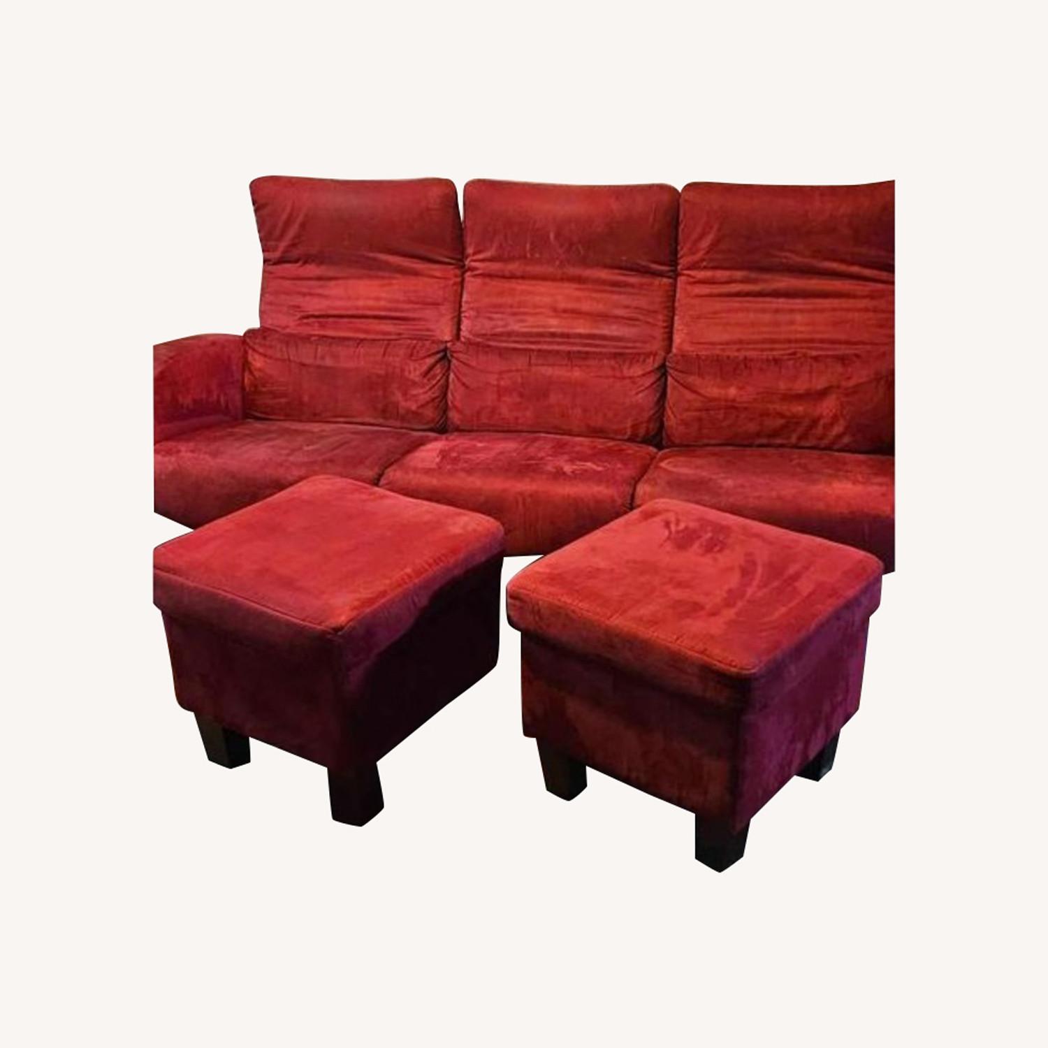Seller's Notes:Great couch with adjustable headrests and recliners plus 2 stools
