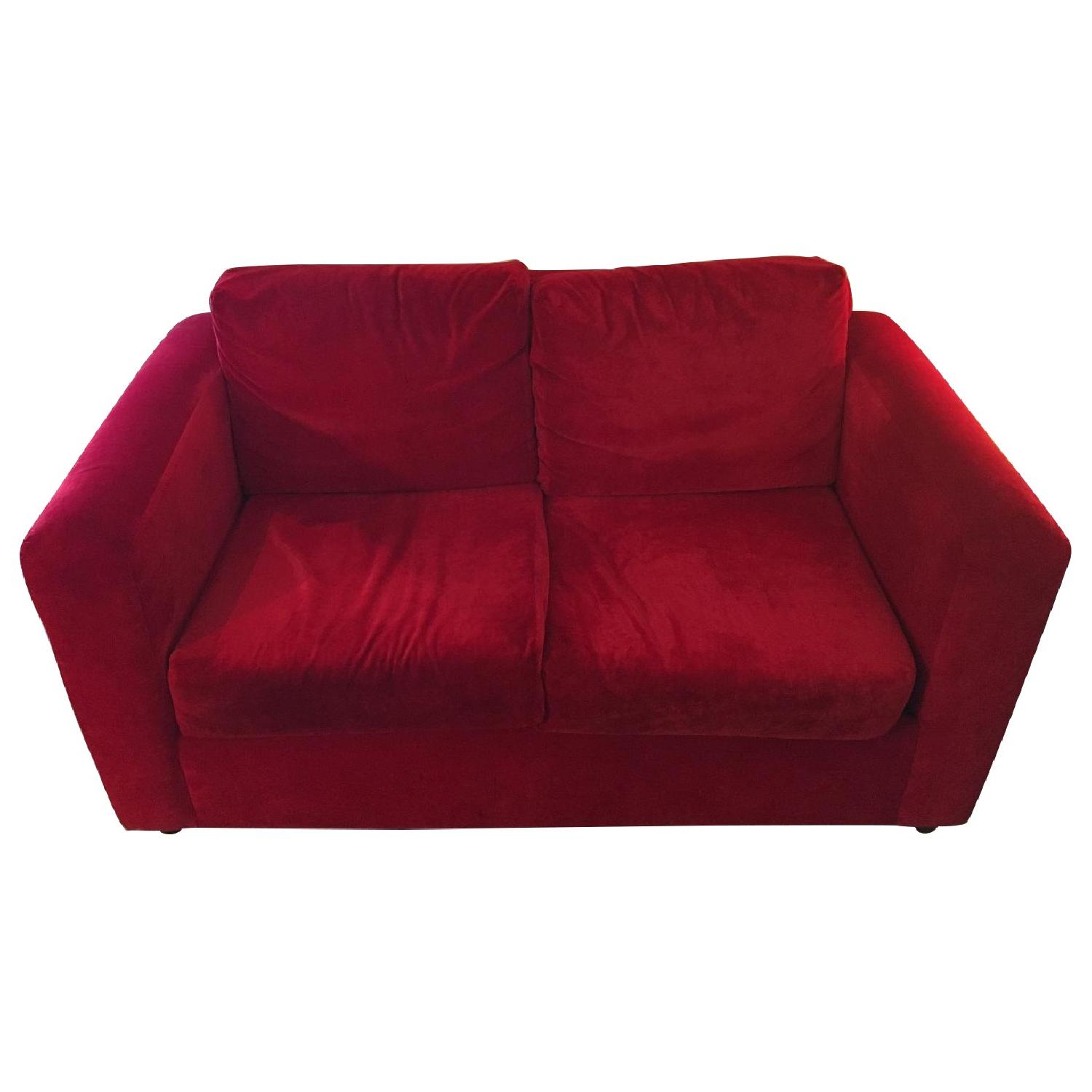 Seller's Notes:We have a pair of matching red velvet sofas in our office. I don't have the original manufacturer information but they are in decent condition, with some modest wear and tear. There are a few scuffs on the upholstery, as shown in the photo. Other than that, they are perfectly presentable and a very good deal if you're looking for some affordable seating!