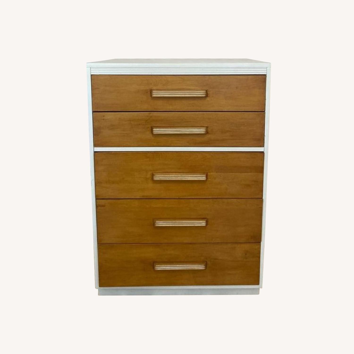 Seller's Notes:This is a lovely refurbished all wooden dresser. Charming and fits well within any decor style. The paint looks nice, the dresser is a great used condition.