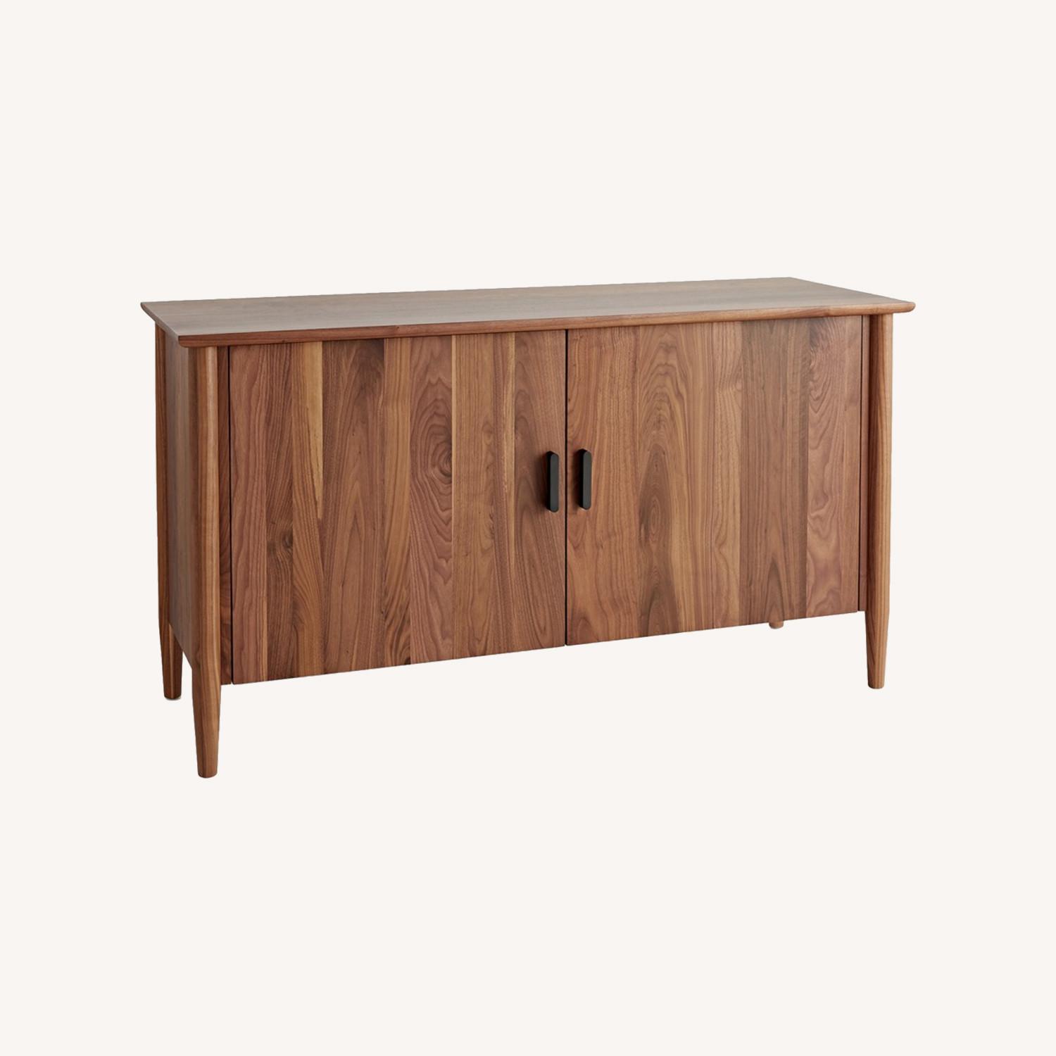 Seller's Notes:Tapered legs, smooth corners, and solid walnut or white oak combine for a truly timeless sideboard. The Shaw sideboard mixes Mid-Century-inspired details with everyday functionality, complete with soft-close doors and interior shelving for easy storage. DETAILS YOU'LL APPRECIATE Exclusive, Mid-Century design with solid walnut or white oak construction Soft-close doors with solid brass hardware Interior shelving for hidden storage Pairs beautifully with our Shaw Extendable Table