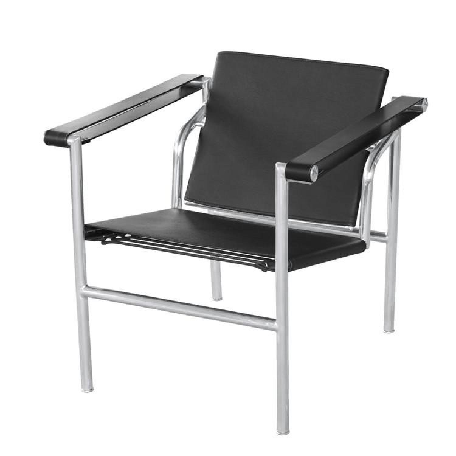 Seller's Notes:A very nice reproduction of Le Corbusier's LC! Basculant Sling Chair with corset style back and seat. The back pivots to accommodate sitting posture. Used as an accent chair in an office. Very minimum wear. Really fits in well in small spaces.