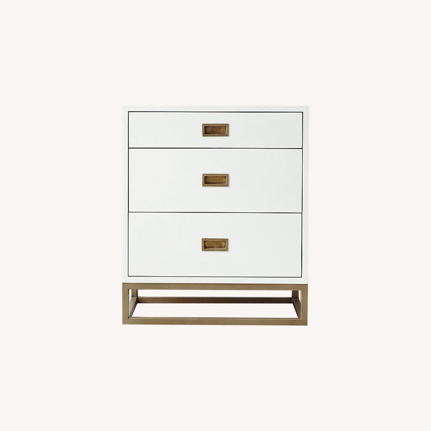 Seller's Notes:Sleek, modern 3-drawer dresser with polished cast metal fitting - including recessed pulls and a metal base.