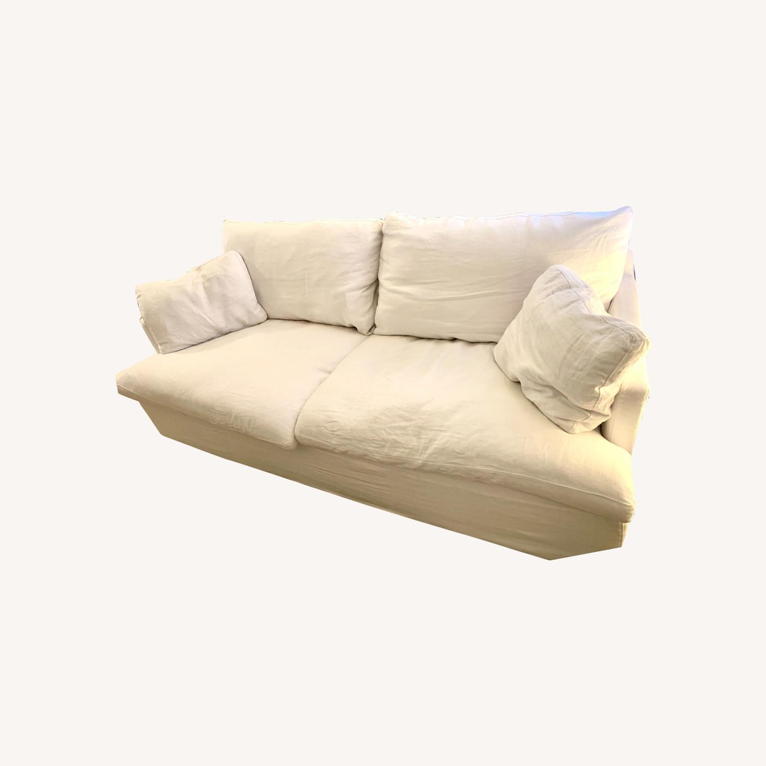 Seller's Notes:Bought this sofa less than a year ago & it's still in perfect condition. This is the model with feather wrapped foam core cushions so they require less fluffing. Only getting rid of it because I'm getting ready to move overseas - if it weren't cost prohibitive I'd be shipping it over with me! RH makes a comfortable sofa. Comes from a pet free, smoke free, child free apt.