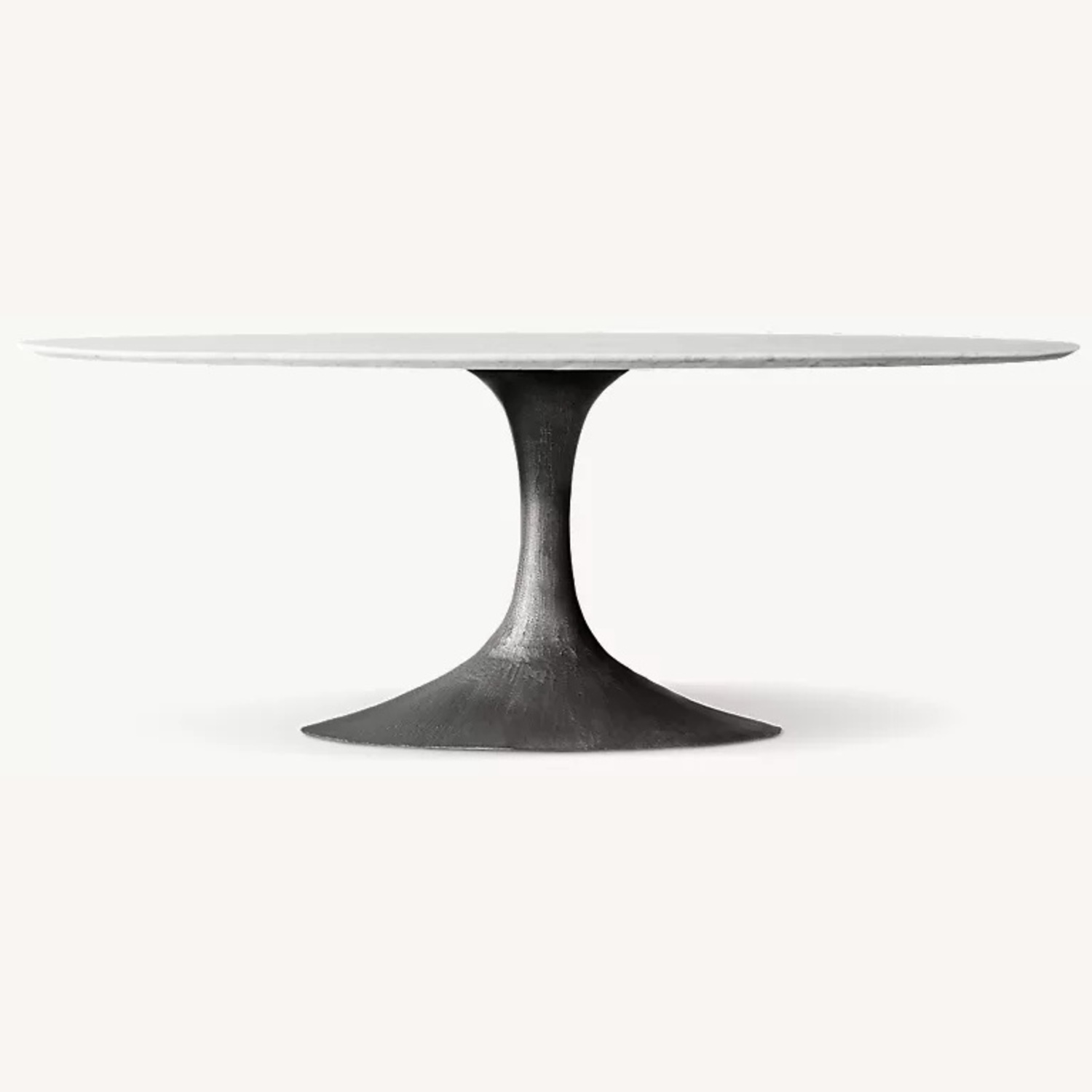 Paying homage to the sweeping lines of midcentury furnishings, our table is a study in simplicity. Defined by its balanced proportions and arching, sculptural curves, our interpretation pairs a cast steel pedestal base with a beveled-edge top, handcrafted of Italian travertine or marble.