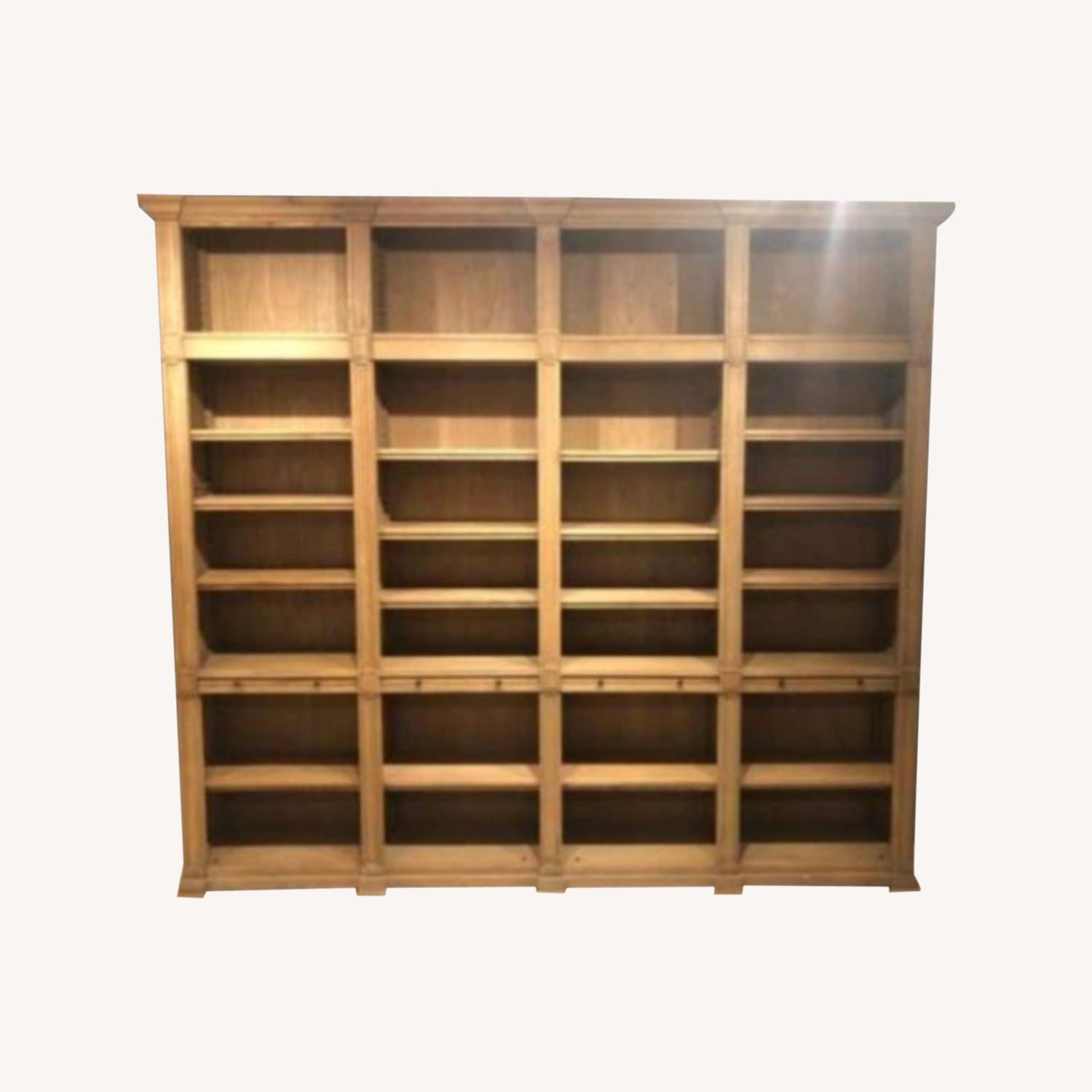 Seller's Notes:Stunning RH bookcase inspired by an antique London library. Framed with carved recessed panels and topped with a molded cornice. It is currently disassembled into two main pieces and shelves removed for easier transport. We just moved and unfortunately this will not fit up our new staircase to its intended space. It is not in an elevator building, but it will not allow me to select 'walk up' without indicating at least one flight of stairs. This is located on ground level and will not need to be negotiated in/out of an elevator!