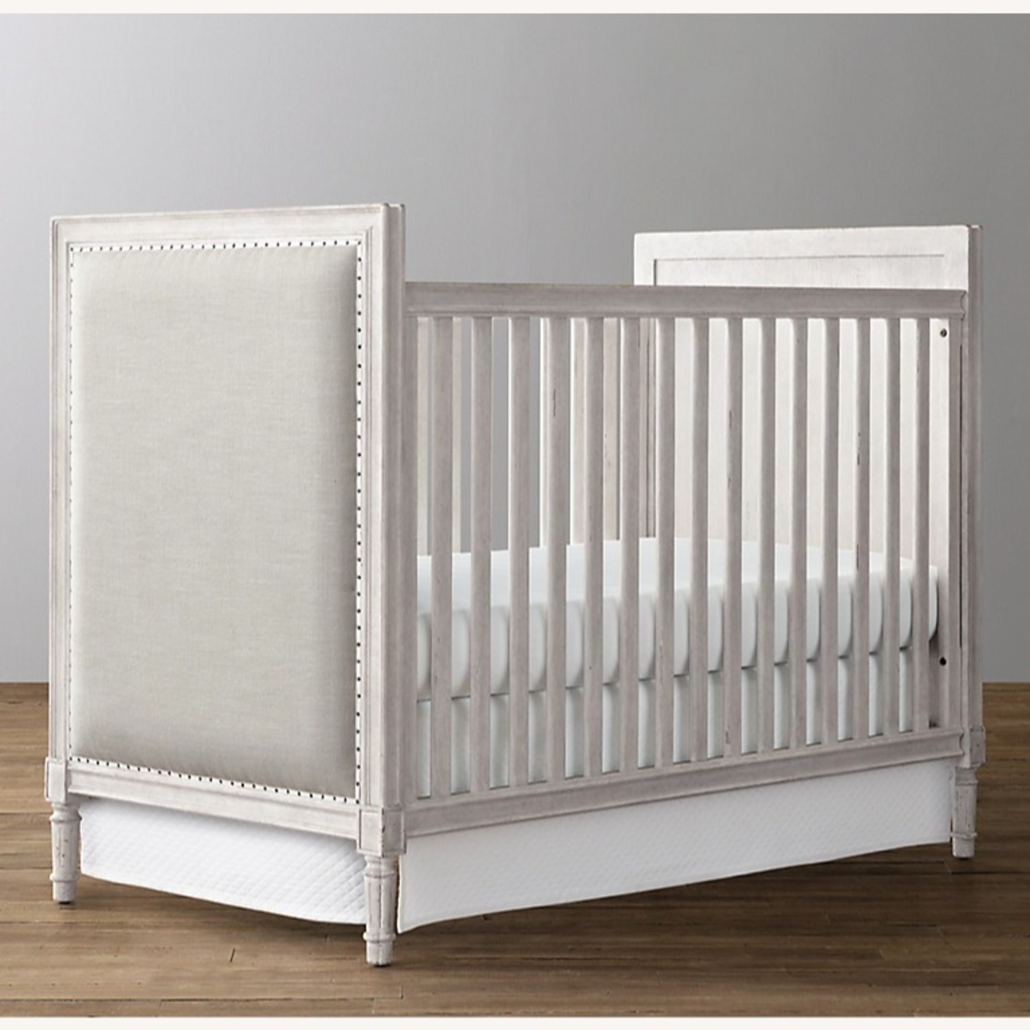 Seller's Notes:Restoration Hardware Marcelle Upholstered Crib - vintage grey