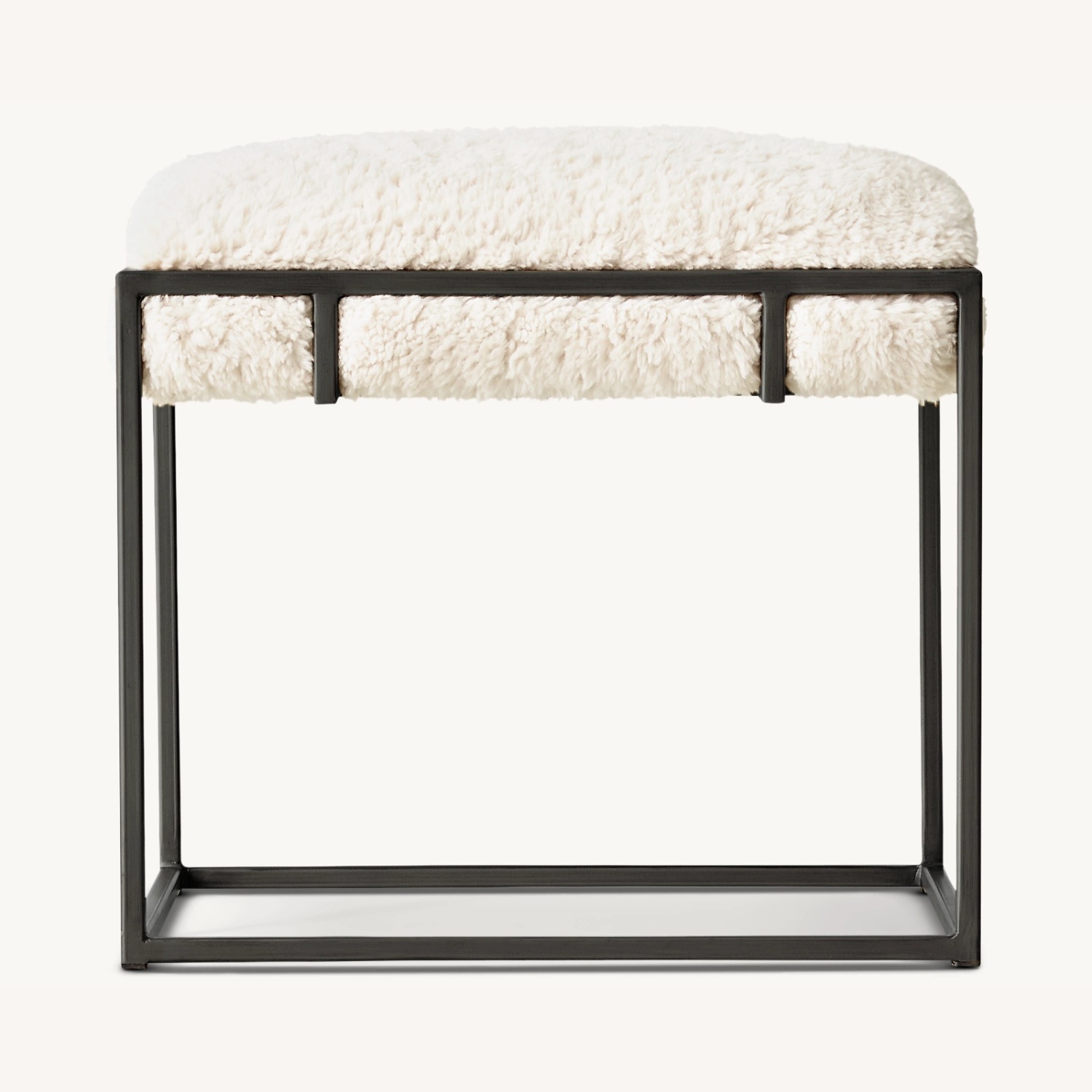 Our stool's crisp right angles and unadorned finish recall the sleek design of midcentury architecture, while its sherpa fleece seat – nestled securely within the sturdy iron frame – offers plush comfort.