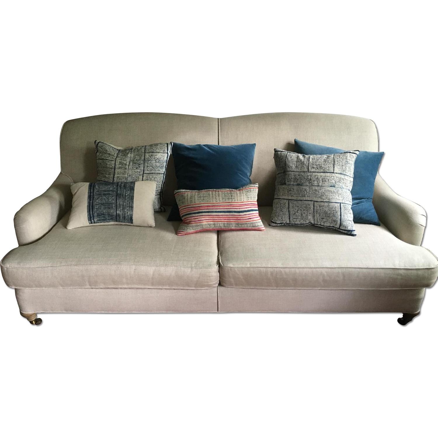 Seller's Notes:I'm selling this sofa to avoid shipping it to SF, where I am moving. It's about a year old and in great condition, no stains. The luxe depth is very comfortable for sitting, lounging, or sleeping. This sofa is no longer available from Restoration Hardware, but you can see their description here: Paying tribute to the luxury and comfort of Edwardian-era furnishings, our Barclay Sofa is marked by its handsome double arched back, low rolled arms and turned front legs on brass casters. The deep profile and loose seat cushions give it a relaxed feel. https://www.restorationhardware.com/catalog/product/product.jsp?productId=prod3060419