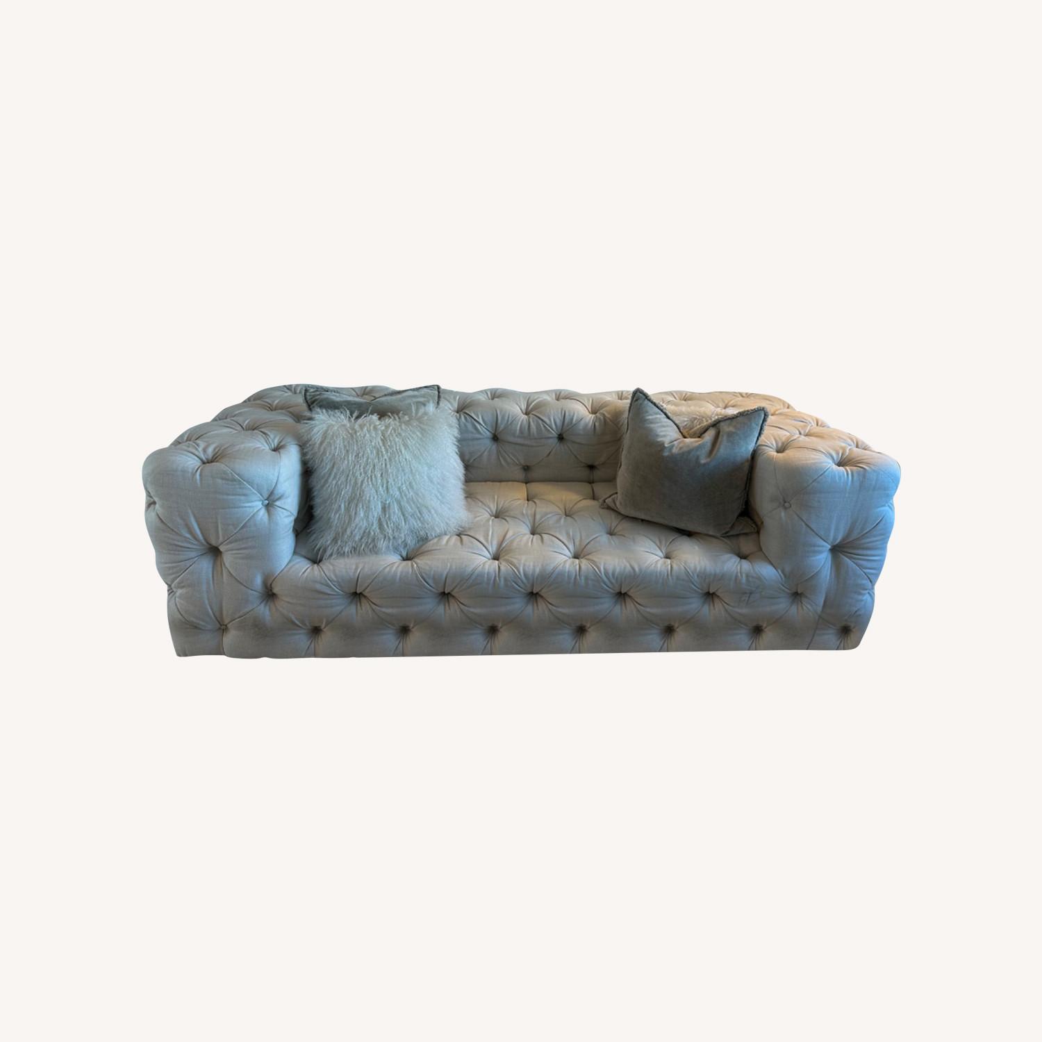 Seller's Notes:Restoration hardware couch in “Belgian linen” fabric, that’s 8 ft long. Really heartbroken to sell this couch, as it is so beautiful. We’re expecting our first child so looking for a larger couch that better fits our space - we only have space for one couch! More Measurements: - 8 ft wide - 45 inches from back of sofa to arm - 28 inches in height - 13 inches in height from the sofa seat to the back of seat. - 29.5 inches in seat depth - 64 inches for length of seating area.
