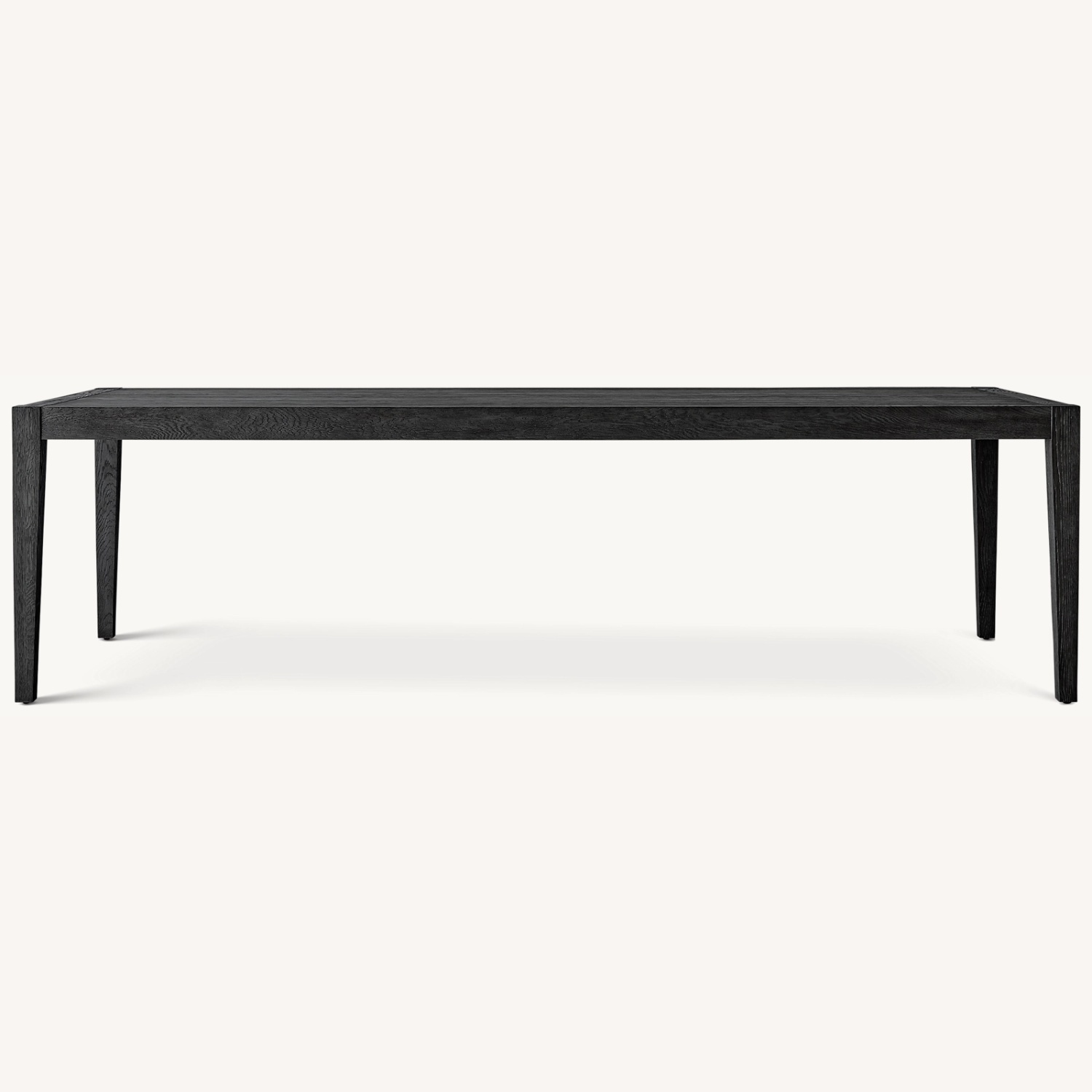Seller's Notes:Restoration Hardware Black Oak Rectangular Dining Table Seats 6 and includes two extension pieces that can have it seat up to 10.