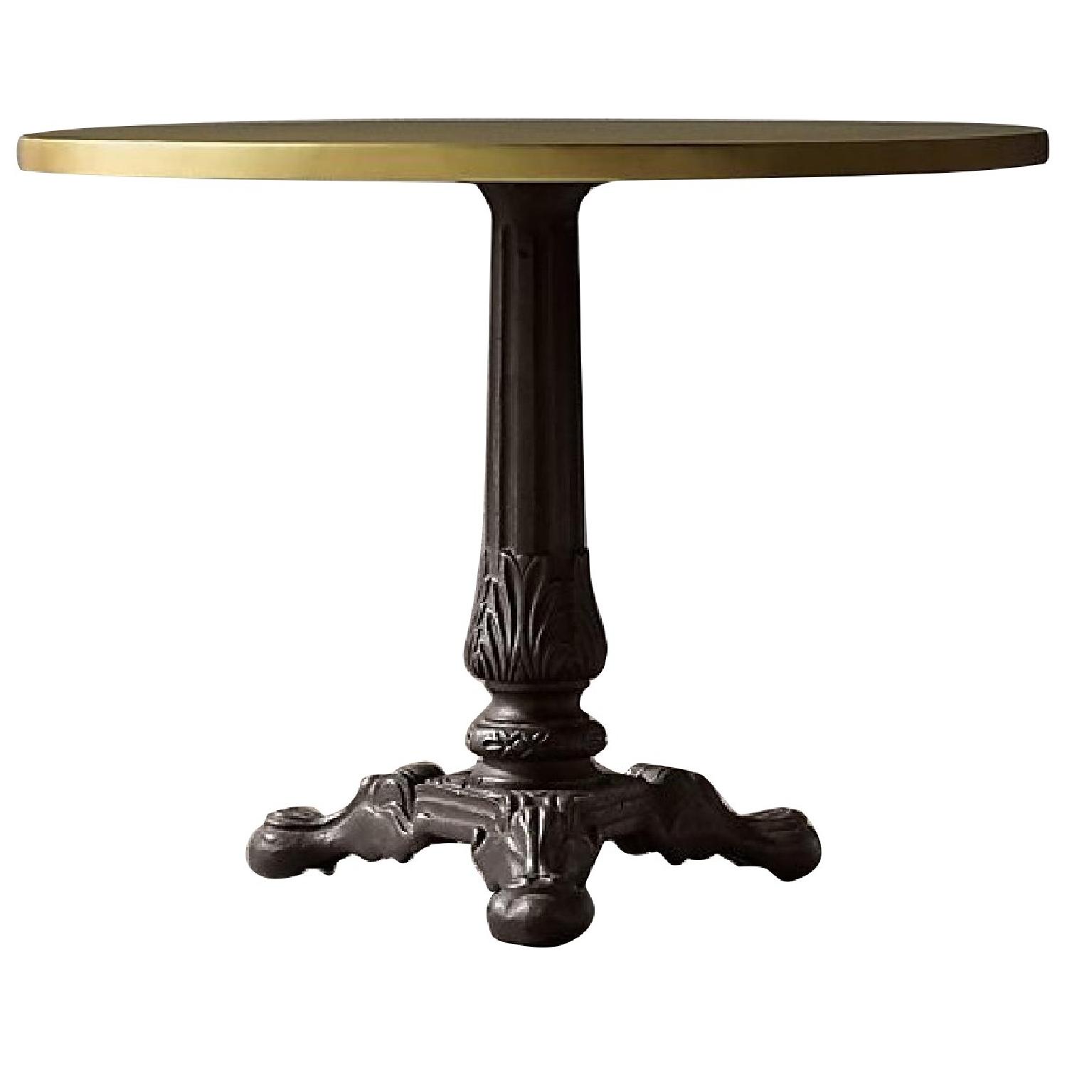 Seller's Notes:Restorations hardware brasserie table. Some minor scratches on the surface but not very noticeable. A timeless piece / we’ll made heavy duty.