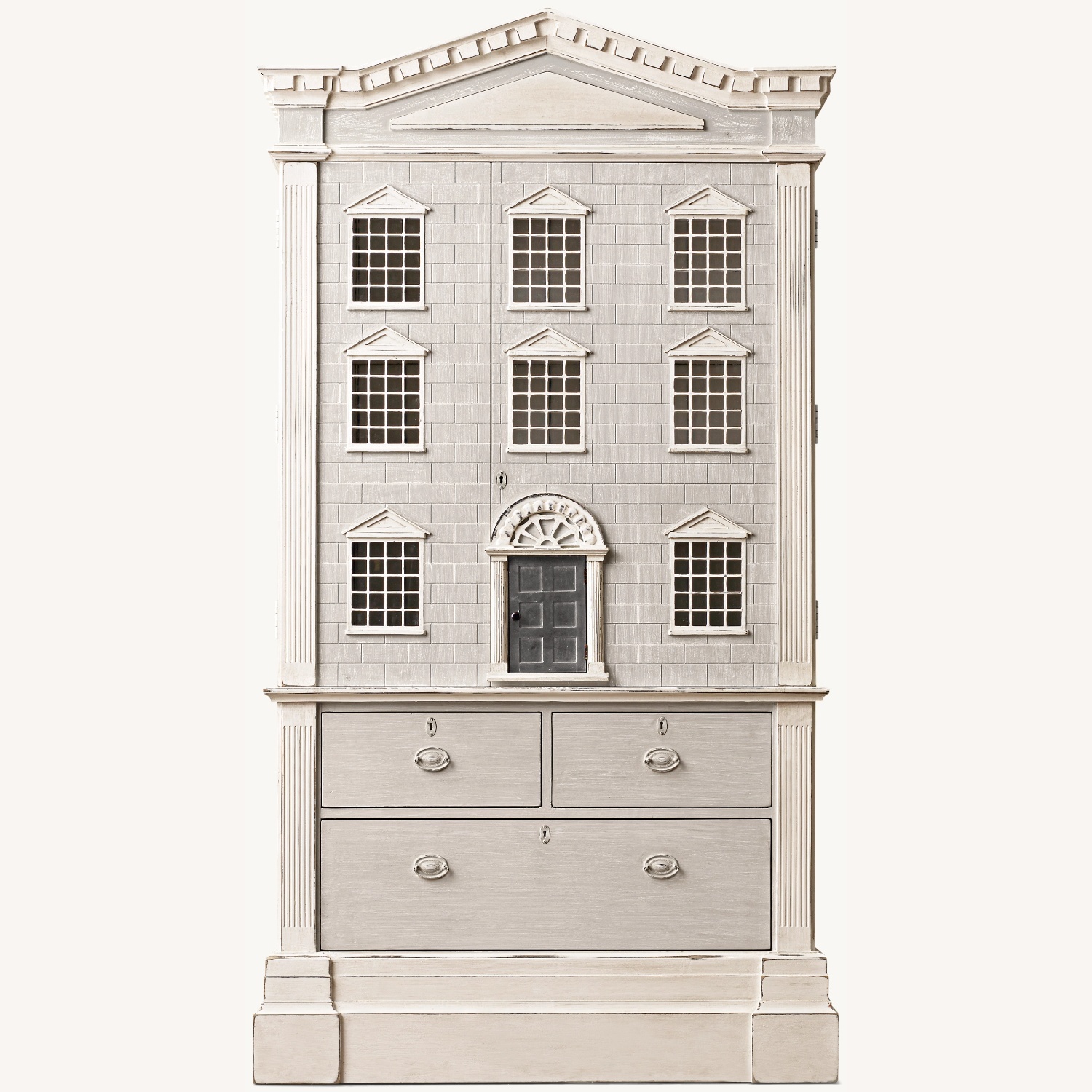 Every child loves the miniature sizing and fascinating detail of a dollhouse. We've taken the architectural grandeur of a Neoclassical home as the facade for our functioning, multipurpose storage cabinet, giving it a playful edge that lends charm to a child's room.