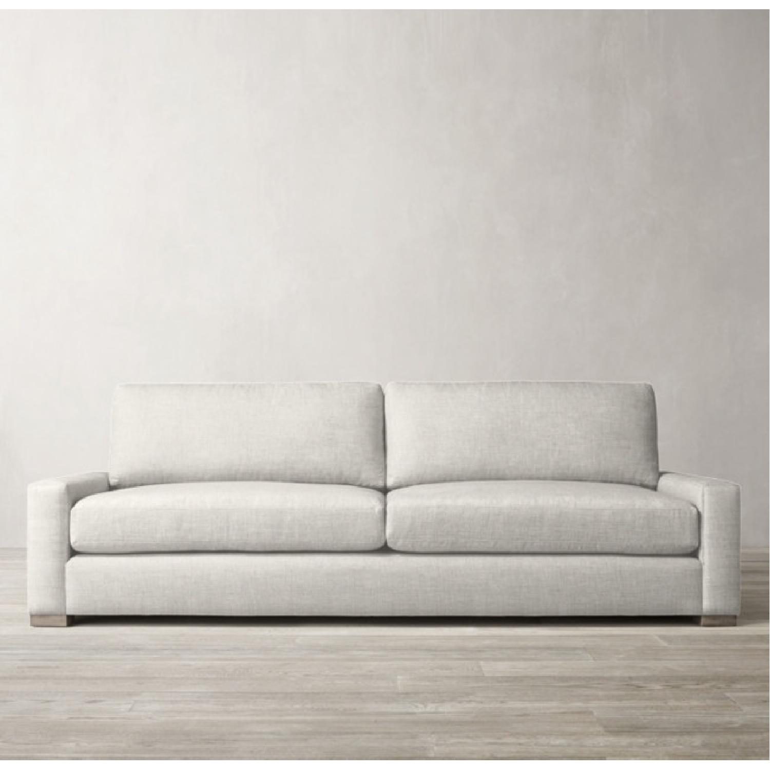 Seller's Notes:A few years old now, but plenty of life left in this Restoration Hardware piece. Selling because I'm moving out of NYC. It's a 7’ Classic depth Maxwell sofa in fog Belgian linen with down feather fill. There are a few minor stains that aren’t very noticeable, and the cushion covers are machine washable.