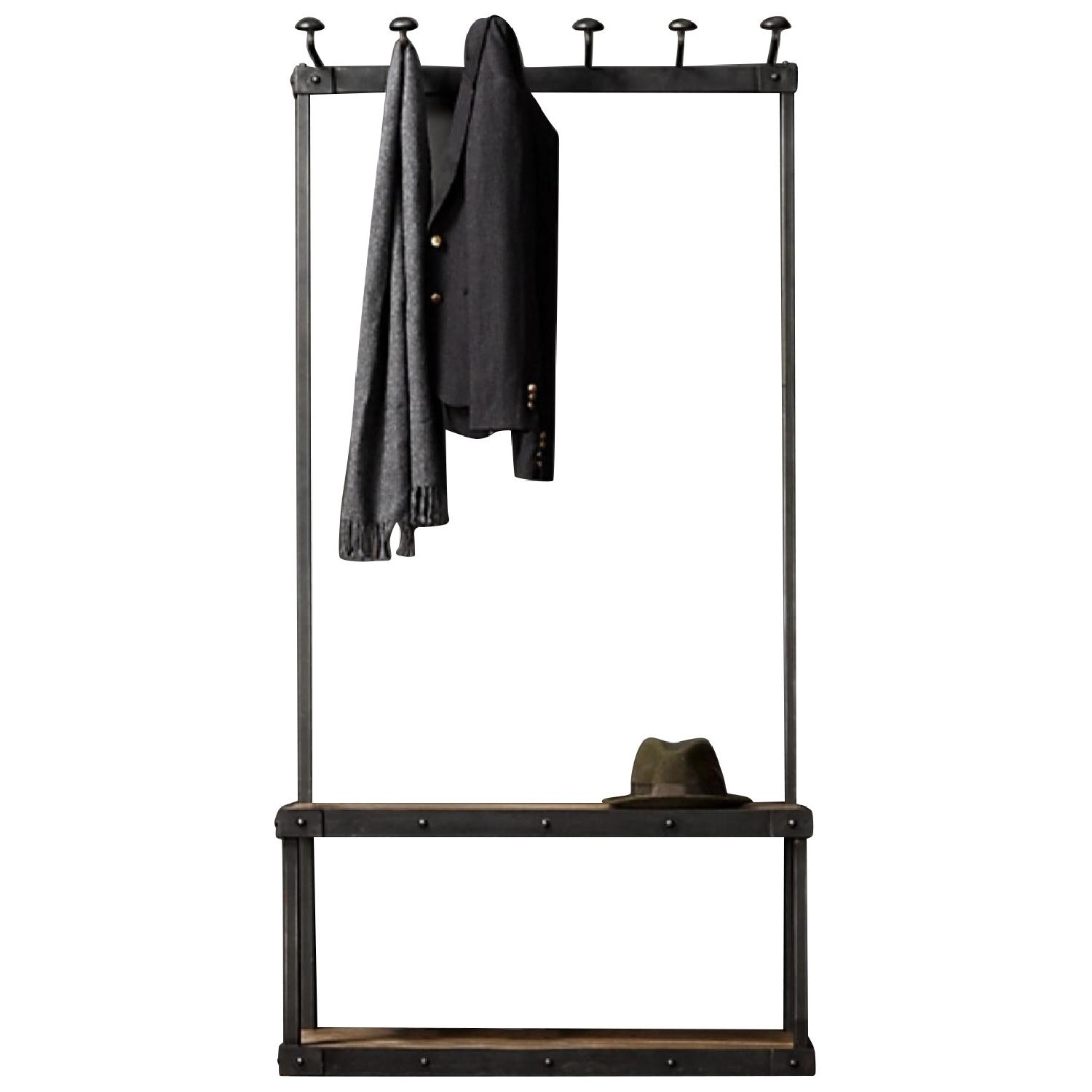Seller's Notes:Restoration Hardware 3ft bench and coat rack. Lightly used, minor scratches that you won't notice. From the website: Equipped with a slatted wood seat and topped by a row of iron hooks, our bench keeps coats, hats, leashes and handbags at the ready, while providing a convenient spot to sit. A low shelf provides storage for shoes and other items.