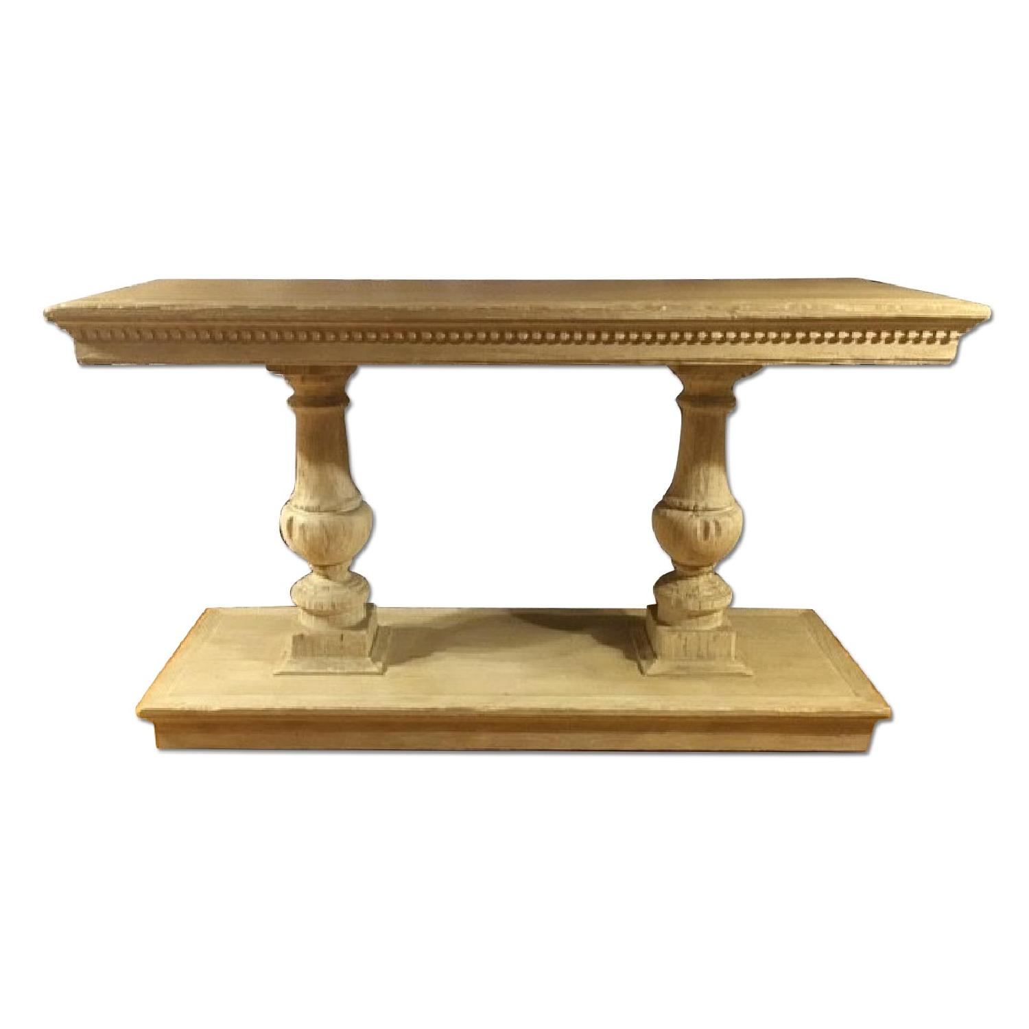 Seller's Notes:I can see no visible signs of wear, the console is in as new condition. The color is not as yellow in person but a light lime-wash finish over a light bare wood. I was told by my handyman that it could also convert nicely to a table or desk height by taking off/unscrewing, the bottom platform to bring it to a 29 inch height.