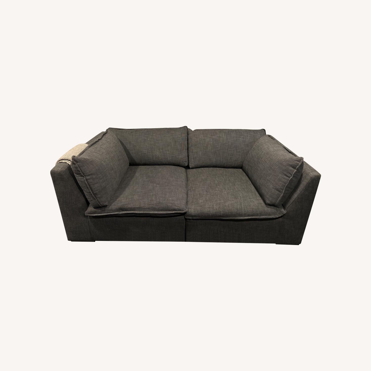 Seller's Notes:I purchase this from Restoration Hardware in November. It was delivered and placed in our basement. We then started construction upstairs on our house so we have spent all of our time in our NYC apartment. Essentially new with no use. It’s an incredibly well built couch, deep and very comfortable. To fit in the space it would occupy, we chose two corner chairs. They are very heavy and won’t slip but have clasps underneath to secure them.
