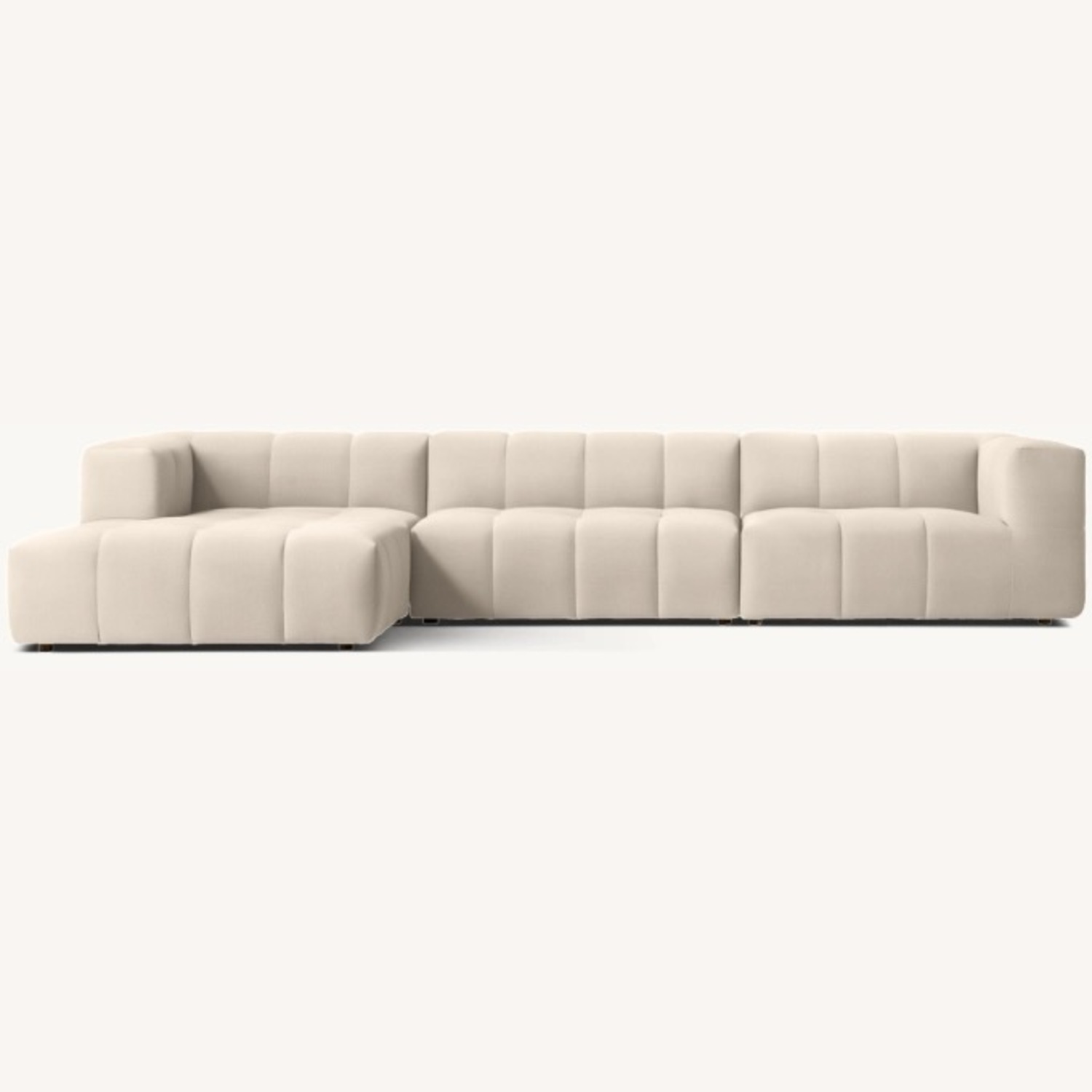 Designed by England's Oliver Oulton, Dario offers comfort on an extravagant scale. Long and low, the cubist modular components feature luxurious, hand-sewn channel tufting, which softens the geometric profile and accentuates the sumptuous cushioning. Modular components are available individually, allowing customized configurations. Guaranteed for life.