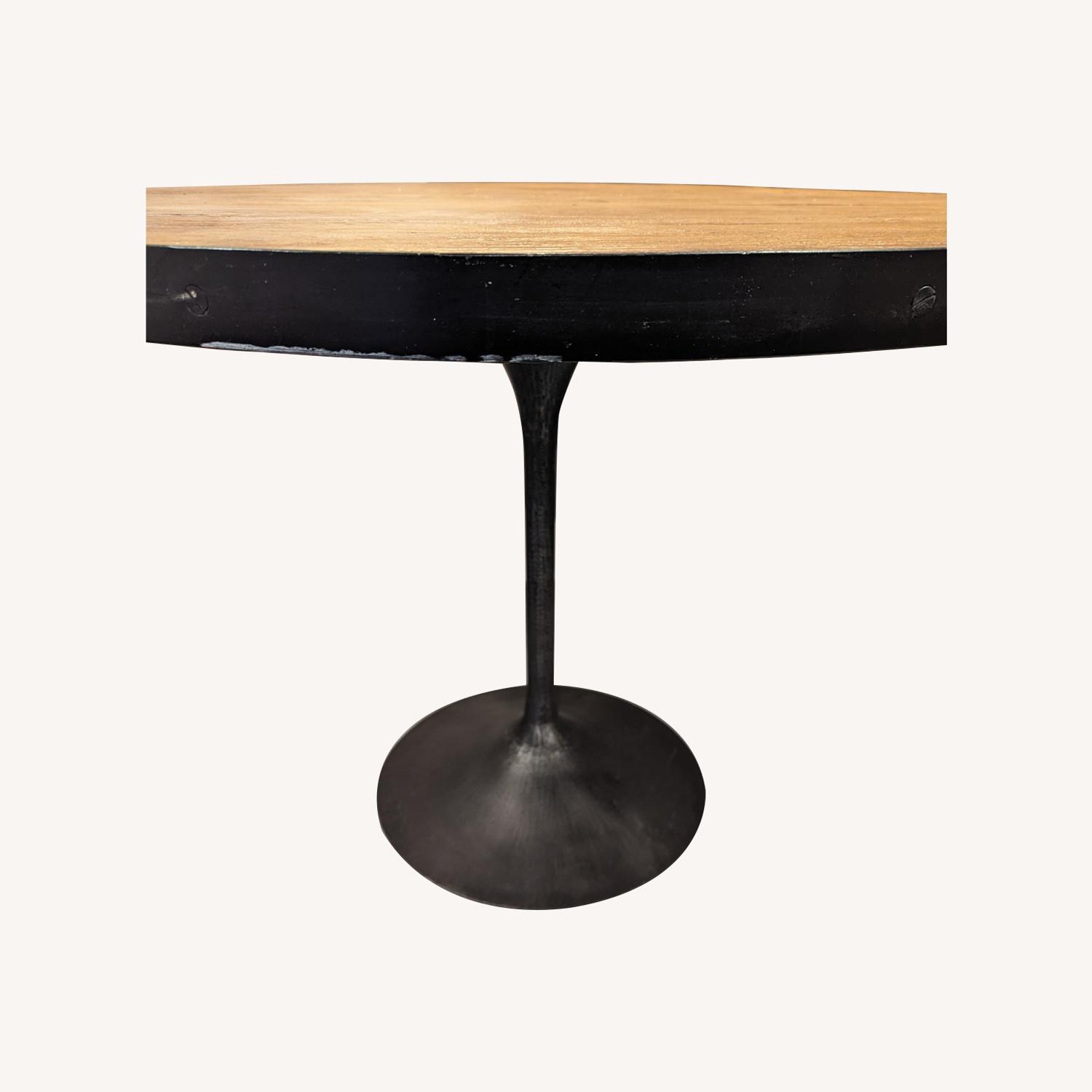 Seller's Notes:Amazing table from Restoration Hardware, great quality! Reclaimed wood top with cast iron band and leg. 42in diameter. Was over 3k new. Selling due to moving. Has a stain but could probably be buffed out but definitely can be sanded.