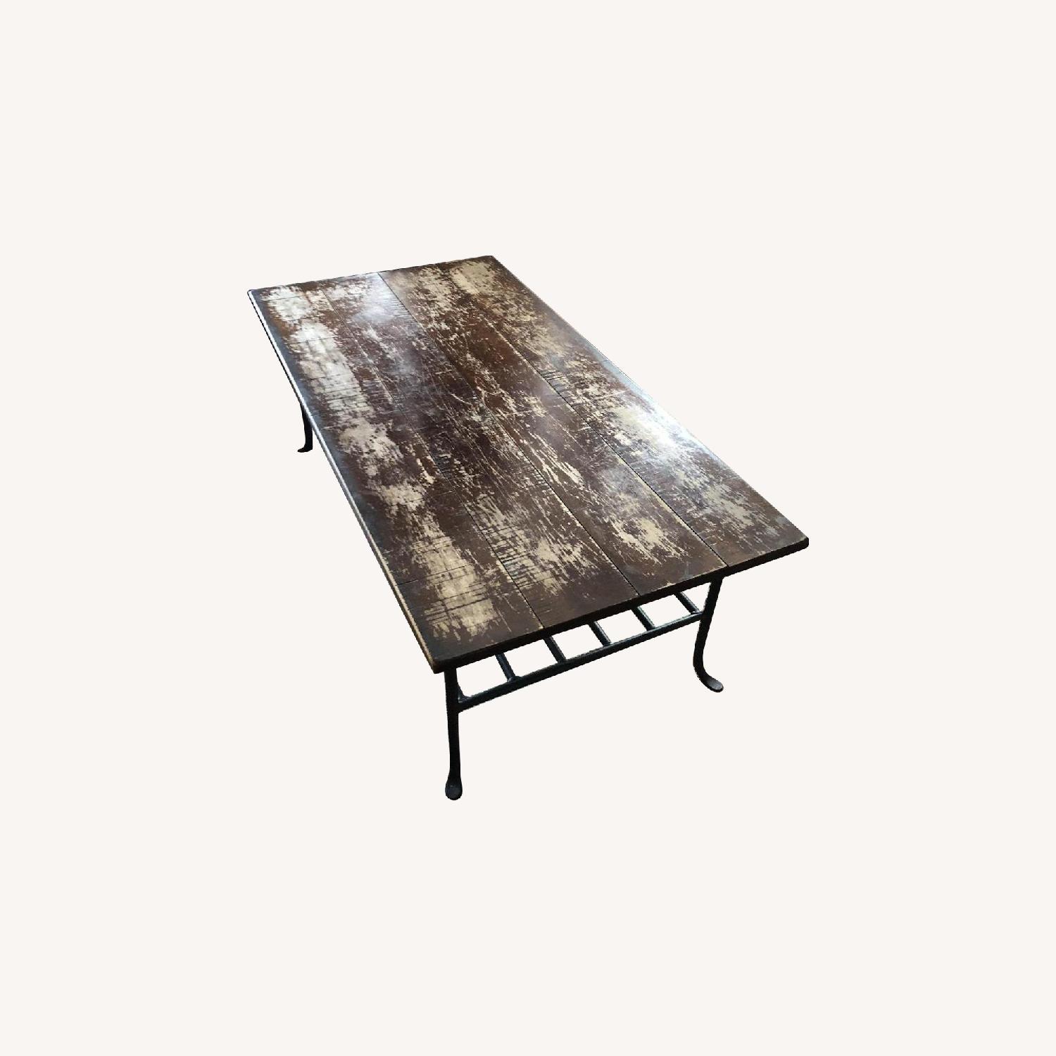 Seller's Notes:Beautiful wood top coffee table with metal legs and slotted shelf underneath. This table is made from very good quality materials and is therefore very heavy. I’ve used it for 5 years and am only selling because I am moving and I don’t have room for it in my new place. I also bought it secondhand so I am not sure when it was originally purchased. Prices low because I need to sell by Monday 7/29.