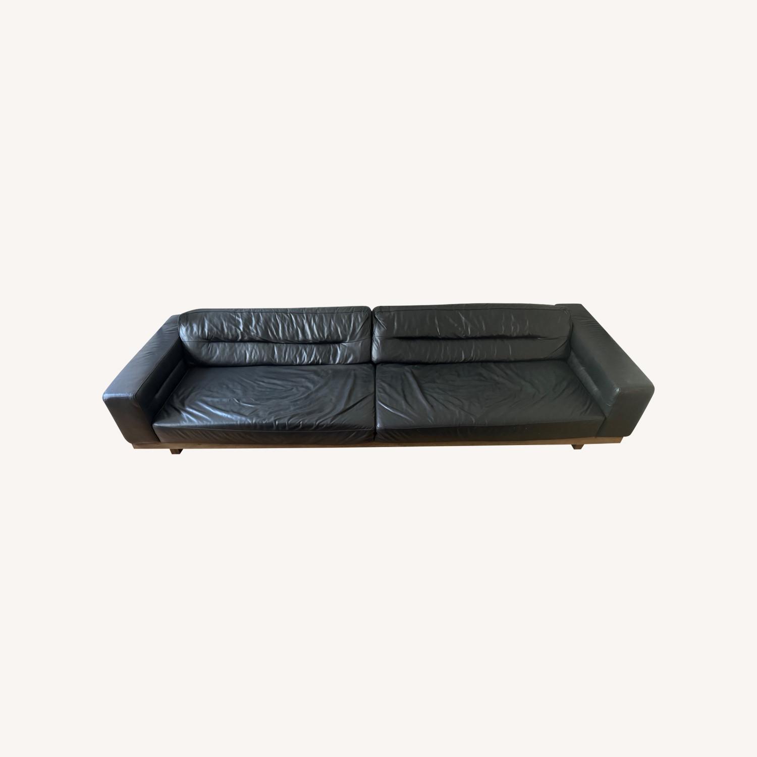 Seller's Notes:Italian Berkshire Black Leather with Grey Oak finish “Our sofa celebrates luxe 1970s style with a low-slung silhouette swathed in supple leather that complements the handcrafted, hardwood frame. Broad arms lend it a weighty presence, while body-conforming back pillows ensure sink-in comfort.” -RH It’s gorgeous and lounging on it is devine but it’s time to move on. IMPORTANT: This beautiful sofa is BIG! For most New York buildings it will need to be disassembled and then reassembled in the apartment. AptDeco does NOT provide this service. To remove it from our place it will require disassembly. We will only work with Dr. Sofa as they have provided exceptional service for us over the years. The cost of disassembly, delivery, and reassembly is not included in the selling price and will be the buyers responsibility. Please contact Dr. Sofa directly for a quote https://drsofa.com