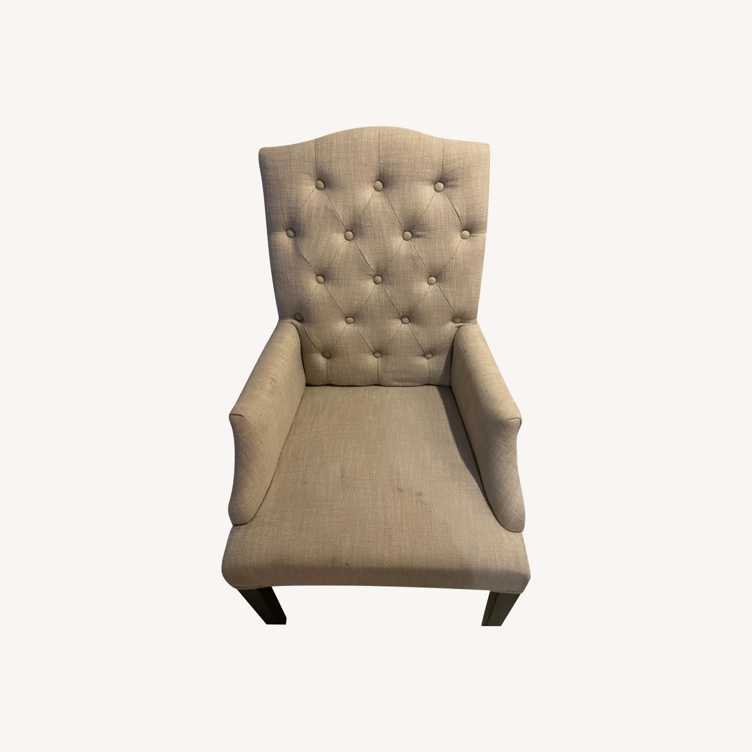 Seller's Notes:Restoration Hardware arm chair in good condition. We are selling it because we moved and our new place doesn't have the space. There are NO nailheads along the back of the chair as this is a slight older version
