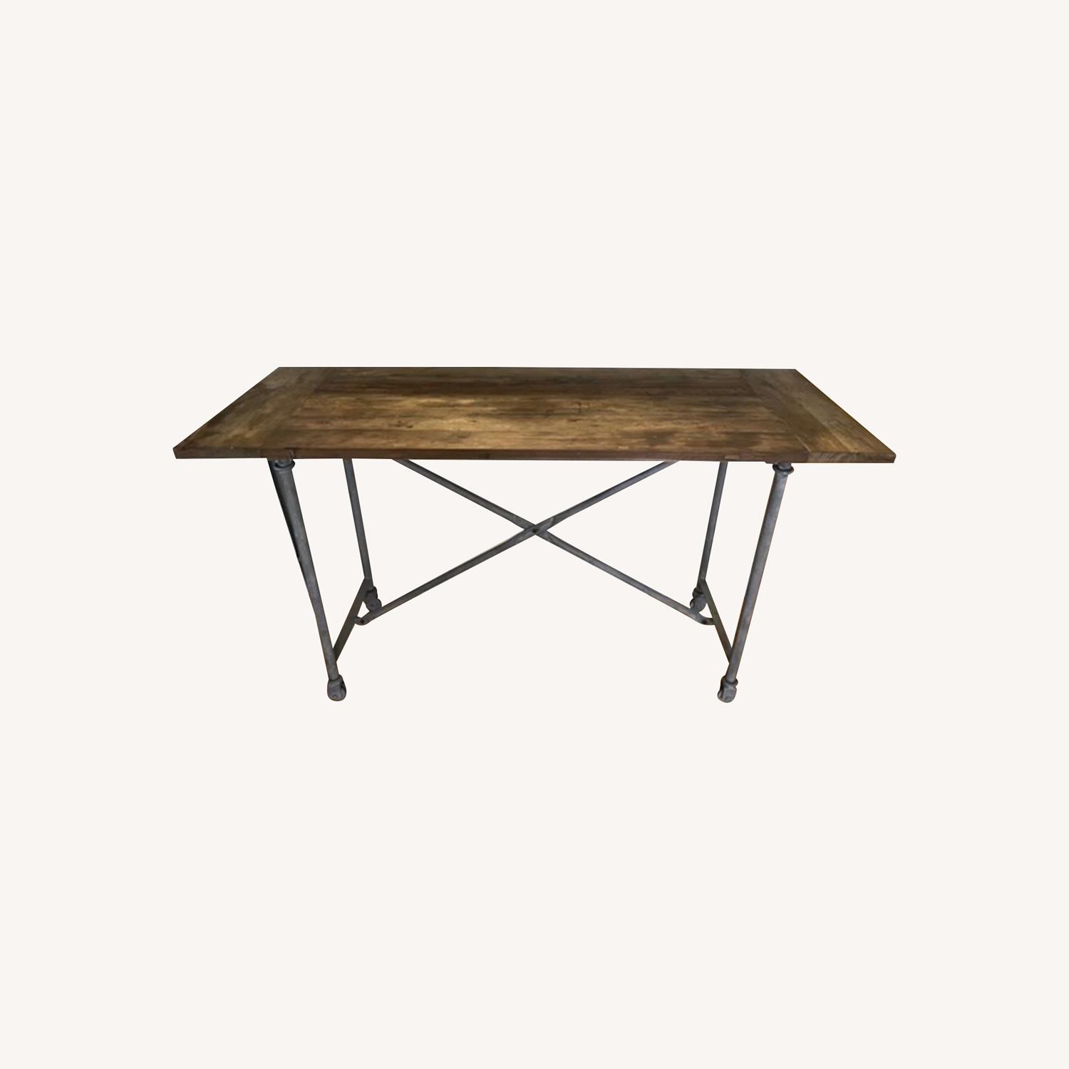 Seller's Notes:Reclaimed natural elm table with zinc legs on casters. This is a counter height table, which doubled as a dining table and kitchen island in my previous apartment. Selling due to recent move - will be sad to see it go! RH no longer offers the counter height table in this size or with zinc legs - the retail link provided is for a model similar to the listing.