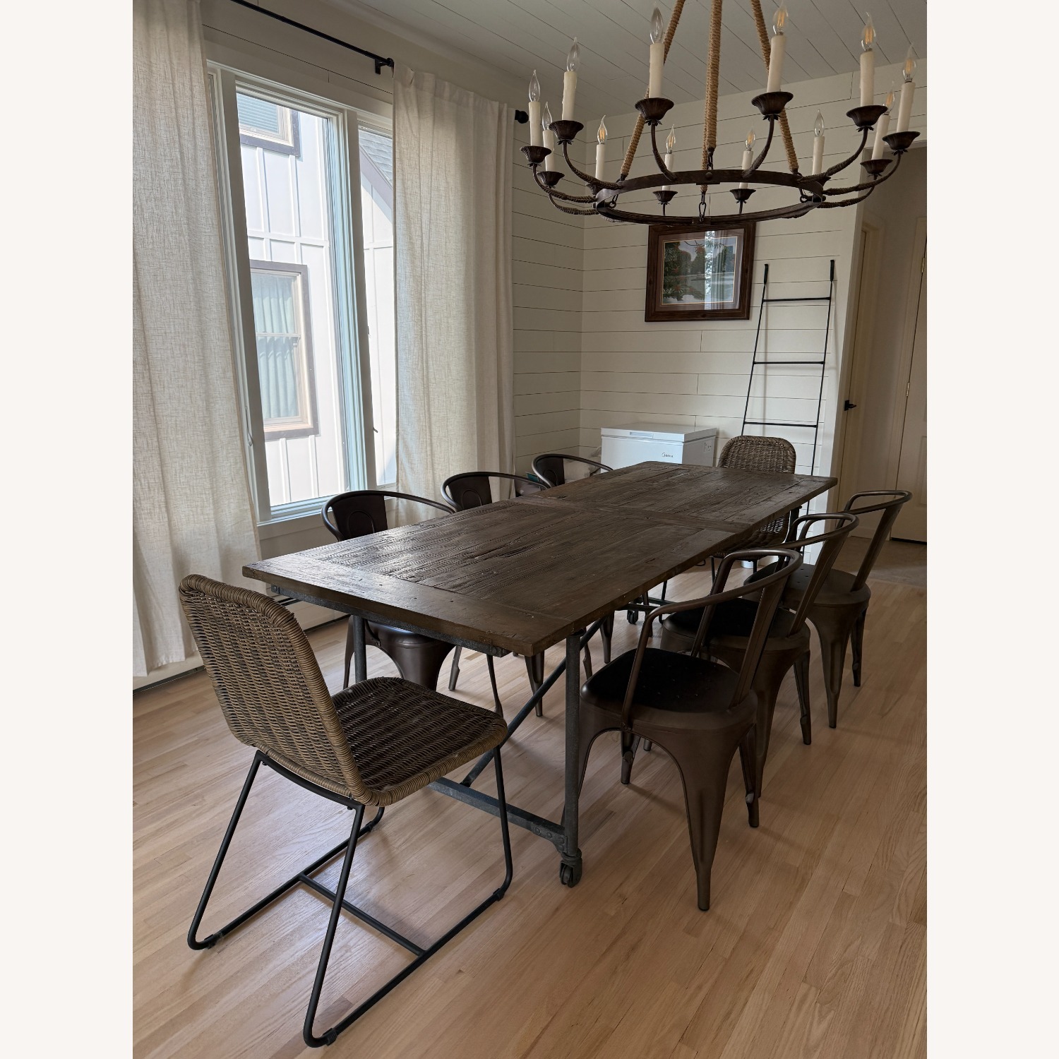 Originally retailed for ~$1,500 (table only), this listing includes all 8 matching dining chairs for one complete setup.