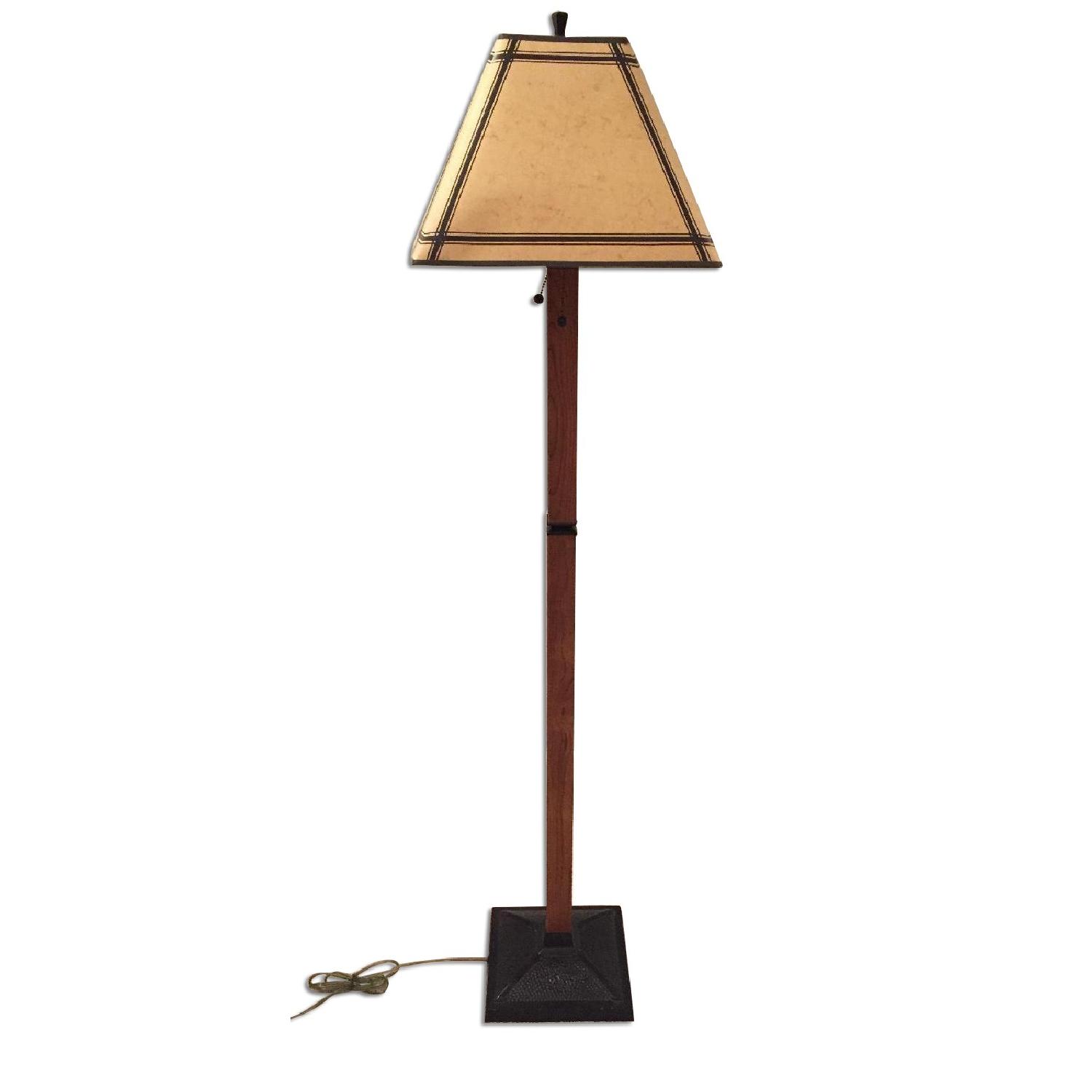 Seller's Notes:Arts and Crafts style floor lamp. Wood with black metal base.
