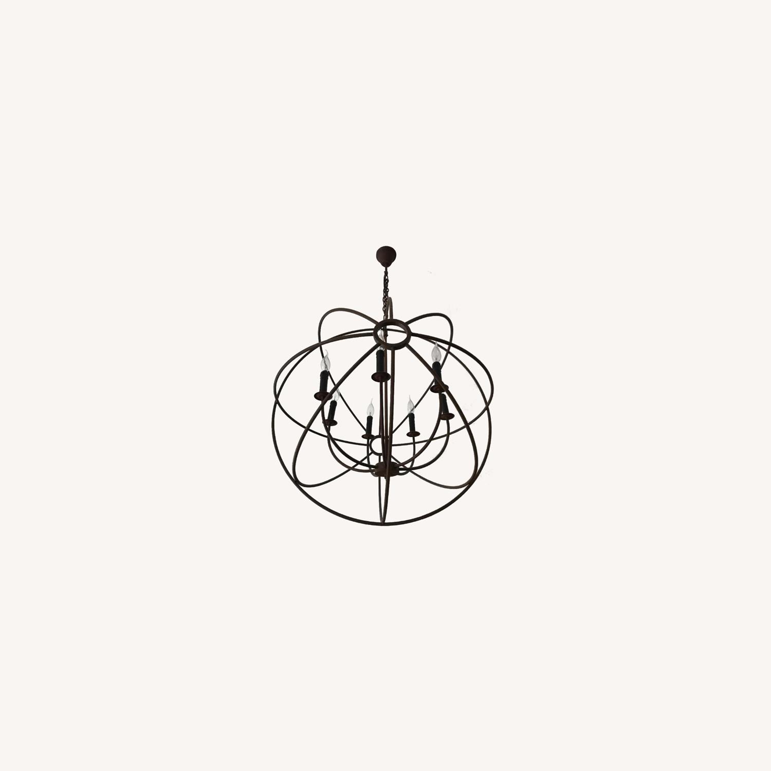 Seller's Notes:We loved this chandelier very much and when we first moved in to our apartment it was the perfect one that fit our style. Our style has changed over the last years and that's why I'm currently redecorating and unfortunately this chandelier doesn't fit any longer. Below you will find extra info on the Chandelier from the Restoration Hardware webpage. The finish on ours is the RUSTIC IRON. Nineteenth century experimental physicist Léon Foucault's gyroscope inspired our openwork globe. Its double-gimbal frame is built of iron around a nucleus of upraised lights, an homage to Foucault's study of the Earth's rotation. HIDE DETAILS - Iron frame supports 7 curved, steel-tubing arms Bobeche and candlestick under each bulb are modeled after a classic candleholder Uses seven 25W max. teardrop candelabra bulbs (included) Fixture is dimmer switch compatible Chain included; optional extension chain (sold separately) adds length to fixture Can be mounted on a vaulted ceiling Dry UL listed: suitable for use indoors in dry locations not directly exposed to excessive moisture and water Hardwire HIDE DIMENSIONS - Overall: 32¼" diam., 35"H Chain: 24"L Weight: 13.4 lbs.