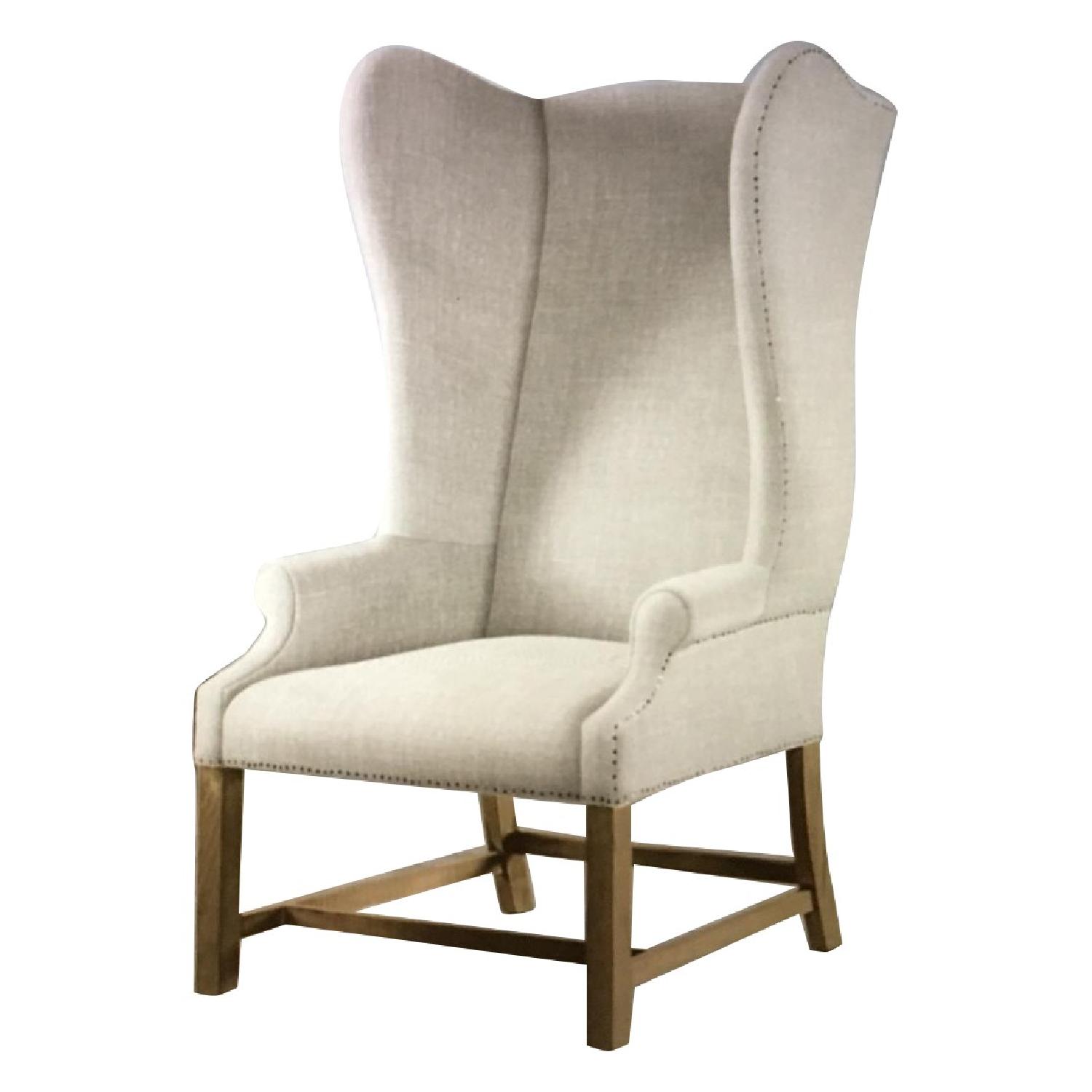 Seller's Notes:FRENCH WINGBACK CHAIR b. The inspiration for the perfectly proportioned wing chair hails from 19th-century France. The RH version has the comfortable pitch of the original with extended wings. Constructed with a kiln-dried hardwood frame. Classic design with generous wings.Hand-hammered exposed brads reflect artisan tailoring. c. 29½"W x 30"D x 53"H d. Weathered Oak Drifted Legs e. Perennials Classic Linen Weave in Natural