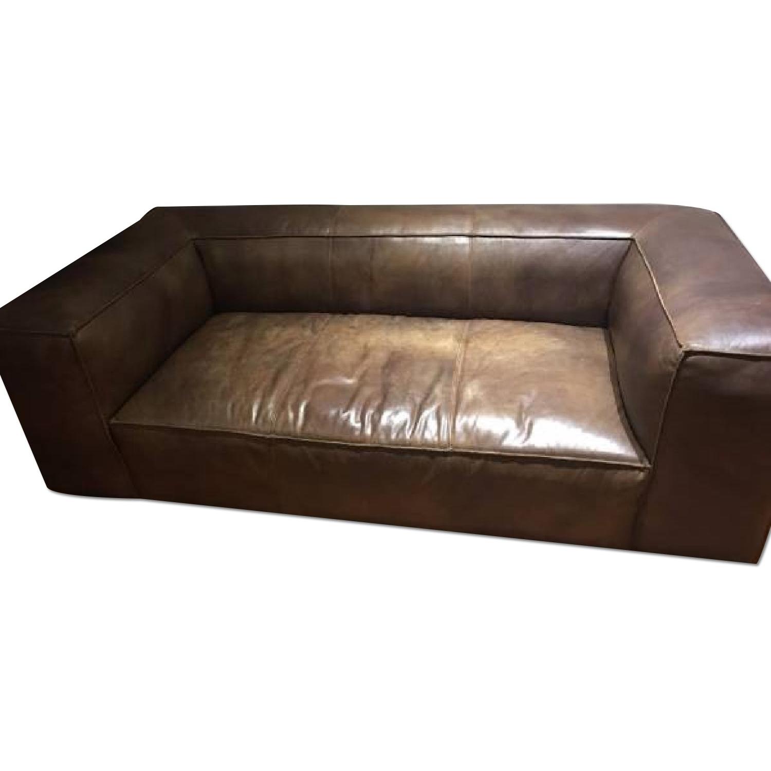 Seller's Notes:Restoration Hardware Fulham Leather Sofa almost like new. 96" long, 47" deep, 30" high. $3,895 retail price. Tailored with reverse seaming that exposes its raw edges, our supple leather sofa displays the casual, well-worn hand of a vintage flight jacket. Its oversized profile, foursquare lines and deeply padded arms and back offer seating with exceptional comfort and relaxed style.