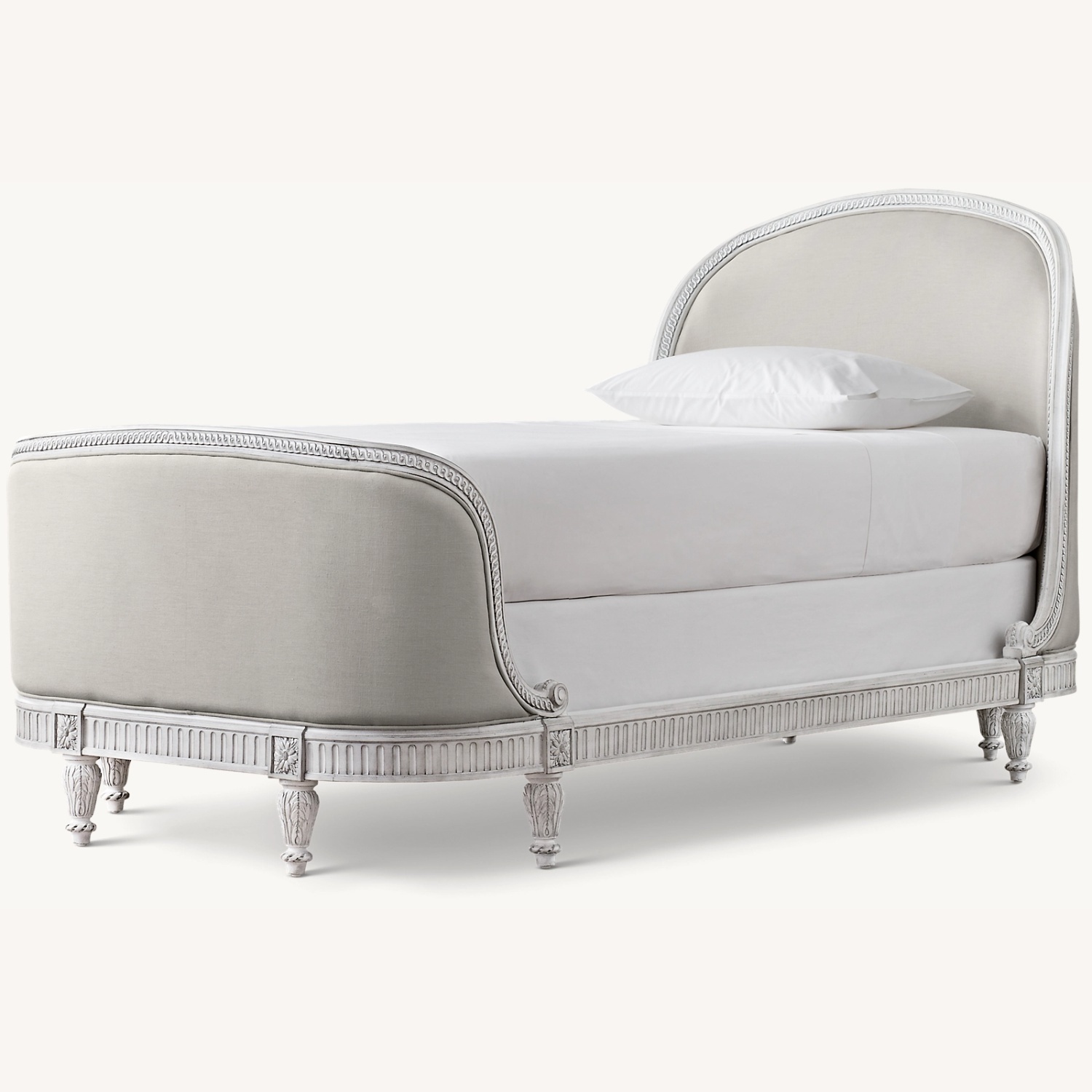 The perfect retreat for a cozy night's sleep, our Belle collection is an exacting replica of a French antique bed. The gently rounded and wrapped headboard and footboard are upholstered in stain-resistant fabric.