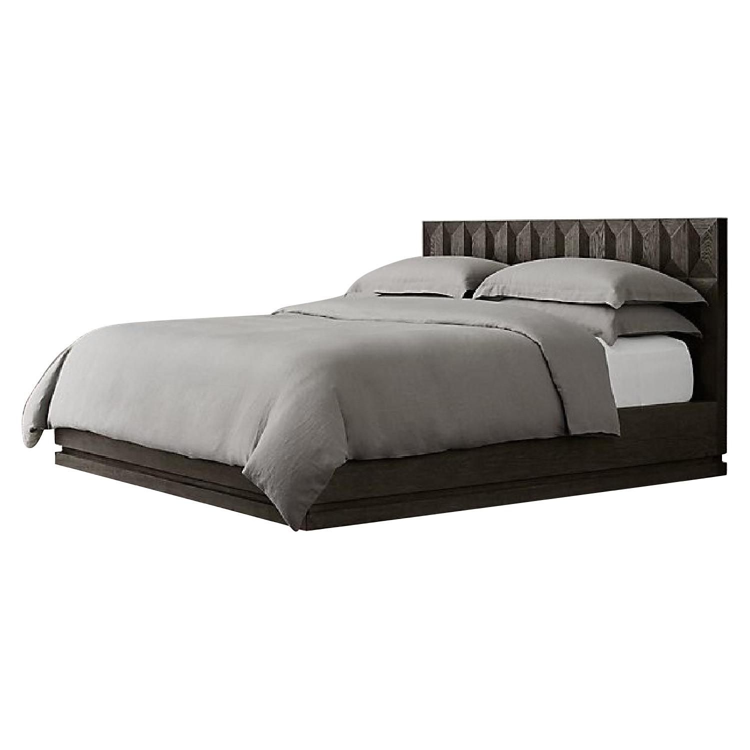 Seller's Notes:Restoration Hardware ‘Geometric Bed’ with half-height headboard. I originally bought it a year ago for $3,000. Two minor dings to the corners that are hidden by the covers. Item is heavy, but comes apart. Needs to be taken out ASAP