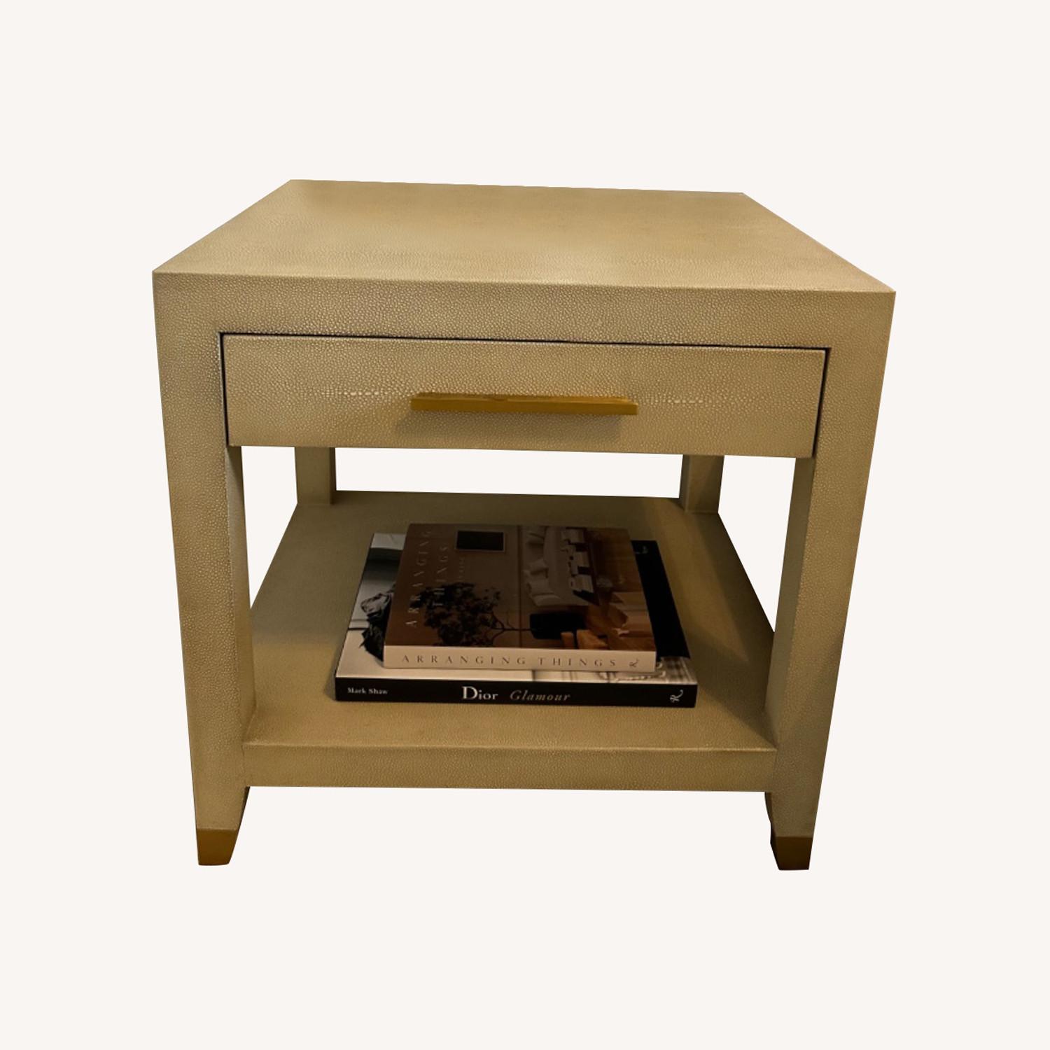 Seller's Notes:I bought these for our new NYC Co-Op then decided to move to FL after two years. They are in perfect condition - barely used because we ended up moving out of the city during covid for 8 months and always spent summers out of the city as well. I am also selling the matching dresser. “A celebration of simple forms and luxe materials, our collection is inspired by the sumptuous refinement of 1930s Paris. Understated silhouettes are clad in rich shagreen-embossed leather, an exacting reproduction of the texture and subtly complex pattern of natural stingray hide.” DETAILS Crafted of shagreen-embossed leather with the texture, pattern and distinctive spine detail of stingray hide Hardwood frame constructed with mortise-and-tenon joinery Design details include solid metal capped feet and meticulously pieced leather panels that reflect the look of classic shagreen Due to the handcrafted nature of shagreen furniture, some seams will be visible between leather panels Hand-applied dyes enhance the unique texture and natural variances of each piece Burnished Brass hardware is crafted of solid brass with a matte finish; Brushed Stainless Steel hardware is crafted of solid stainless steel with a satin finish; Bronze hardware is crafted of solid stainless steel with an antiqued finish Due to its reflective nature, hardware finish may appear to vary based on lighting conditions Dovetailed drawer features German-engineered soft-close mechanism Use coasters under beverages to prevent marks and stains Wipe with a soft, dry cloth; avoid the use of harsh chemicals or abrasive cleaning materials