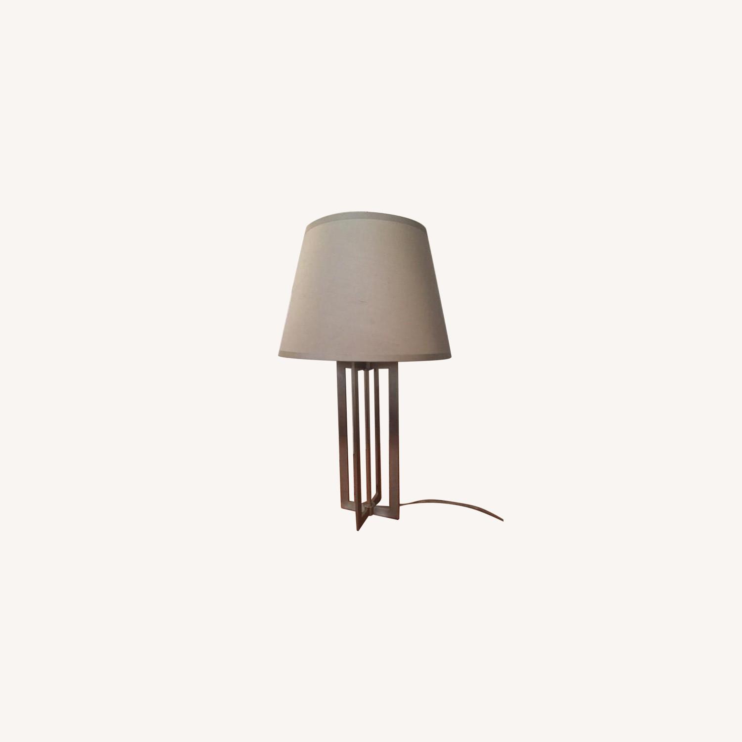 Seller's Notes:Gorgeous sleek Restoration Hardware floor lamp with dimmer. Made out of high quality materials and on the heavier side. Also selling a floor lamp that matches.
