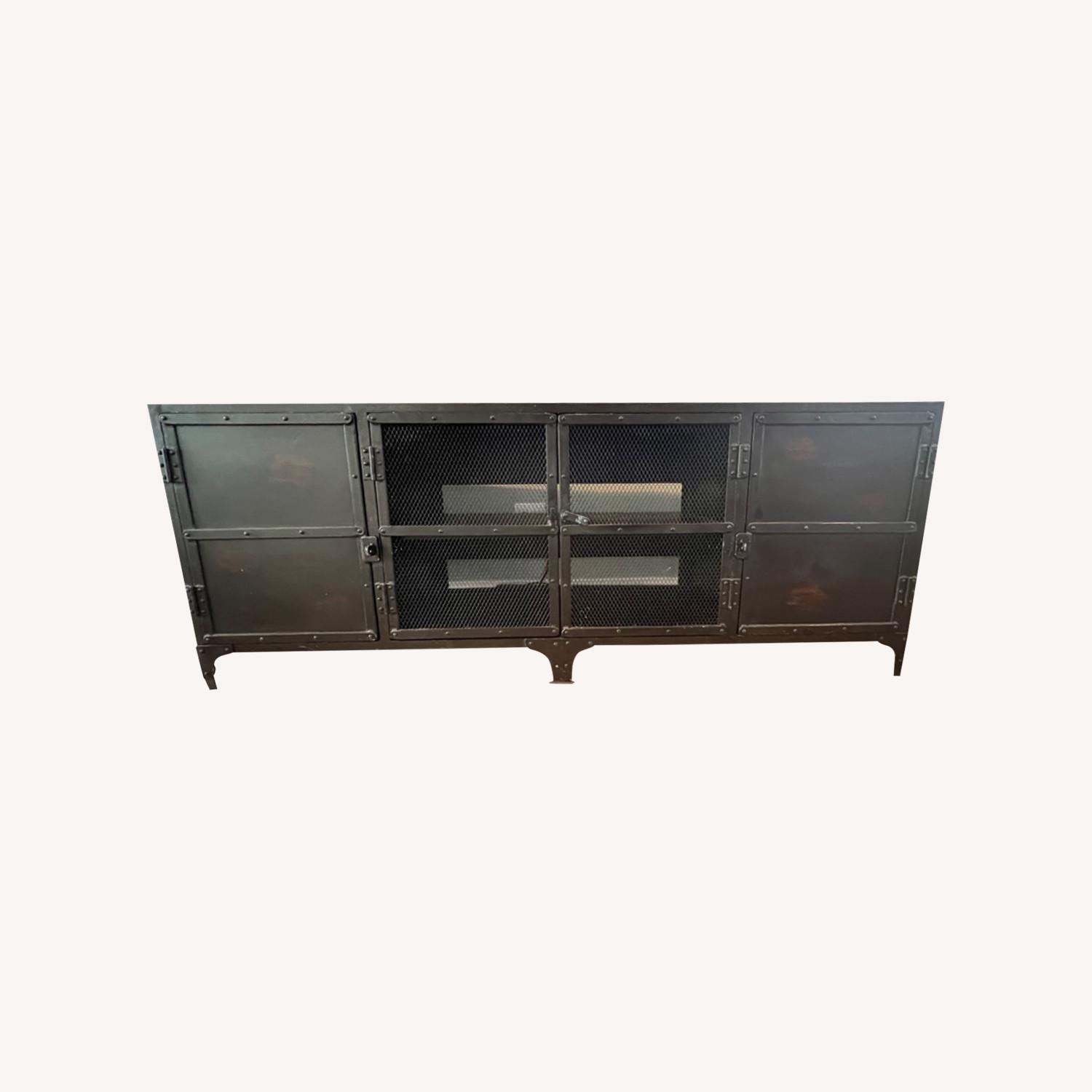 Seller's Notes:Metal Industrial TV console with wire mesh middle for good ventilation. It has excellent storage. Beautifully crafted and designed. We are sad to part with it but it doesn’t work with our remodel.