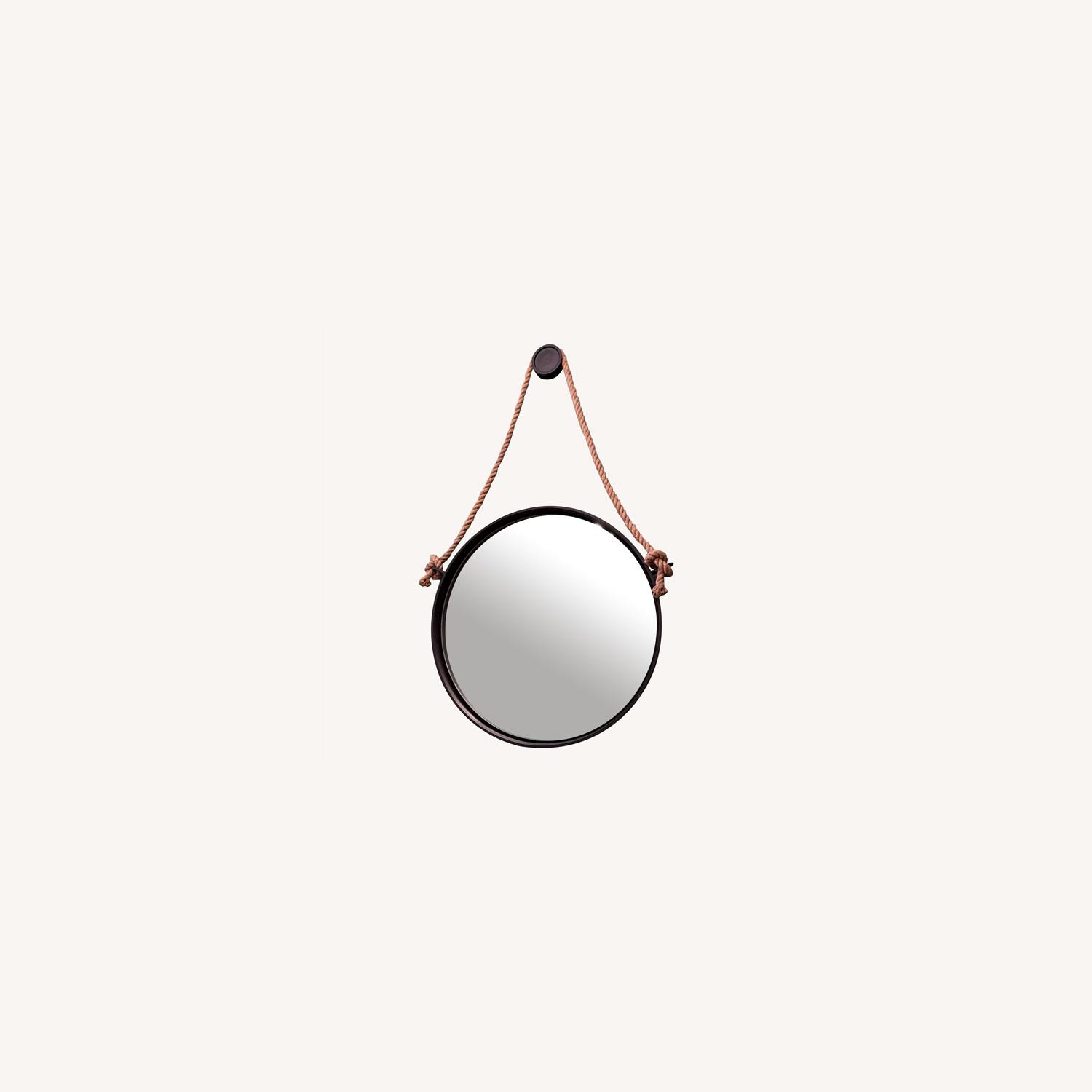 Seller's Notes:Mirror is in excellent condition. It was delivered and mounted five years ago and hasn't moved an inch since. Oxidized metal black frame and knotted jute rope. The rope only serves as a textured accent so the mirror hangs from a bracket on the back panel. 64 lbs. This will need to be picked up by Friday March 11 or if that's not possible we can figure out delivery. Unfortunately AptDeco doesn't have pickup/delivery availability until the following week so we need to use a third-party service.