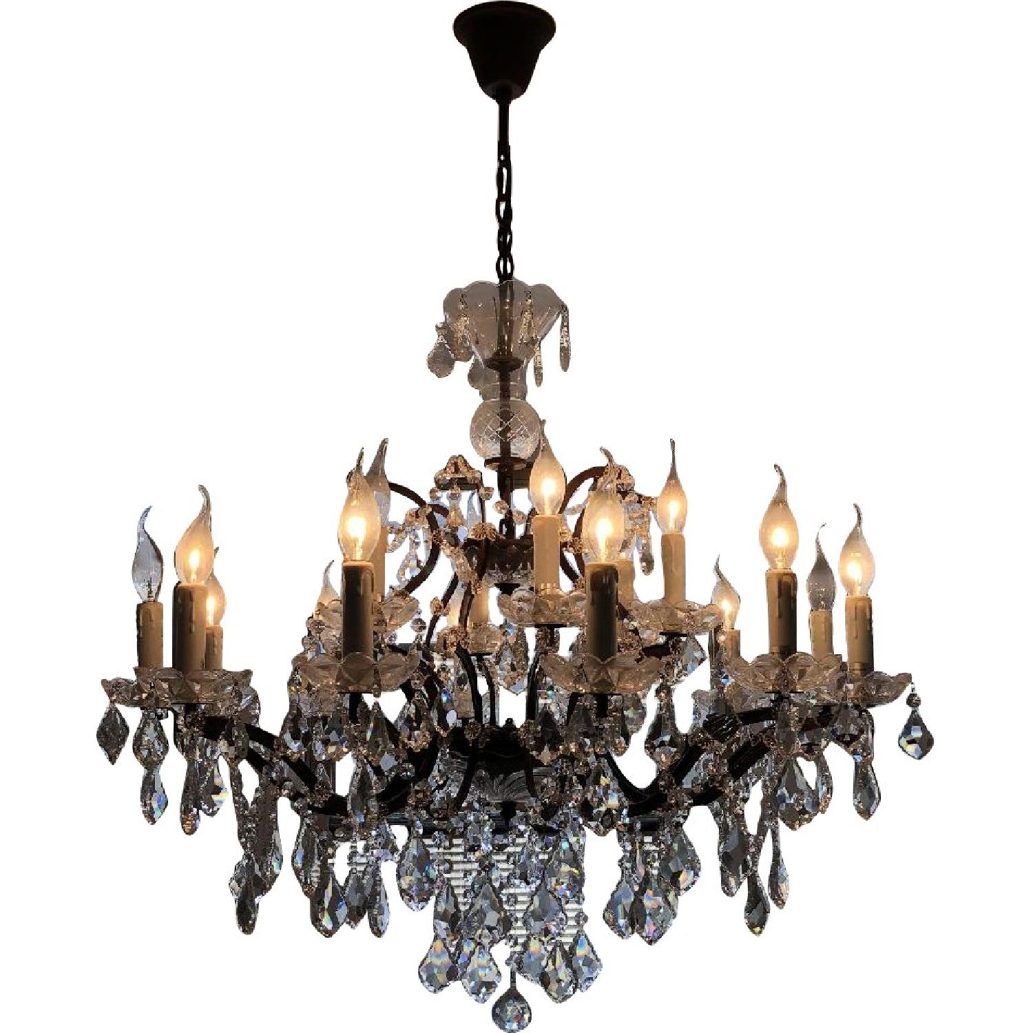 Collection: 19th C. Rococo Iron & Clear Crystal Round Chandelier